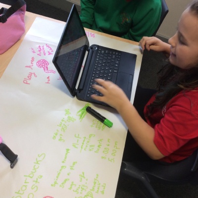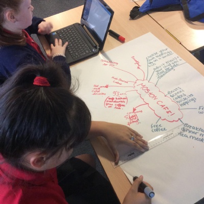First session: children planning their 'pop-up' cafe, completing market research and getting ideas from other school websites!