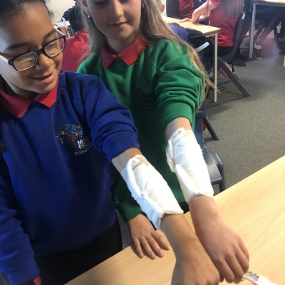 The children learnt how to keep themselves safe when dealing with blood, how to respond quickly in an accident involving blood and how to apply a bandage accurately to keep the wound clean and apply pressure to stop bleeding.
