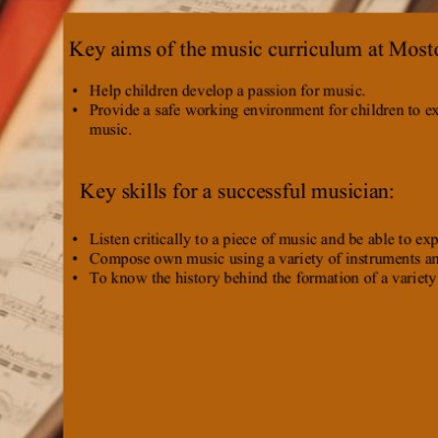 At Moston Fields, we believe that Music plays an important role in our broad and balanced curriculum. Music provides the children with the opportunities to be expressive, creative and to explore their feelings and emotions. One of the principal objectives of this subject is to help children acquire a more perceptive approach to the medium of sound, which has implications for children’s listening skills not only in music lessons, but across the wider curriculum.