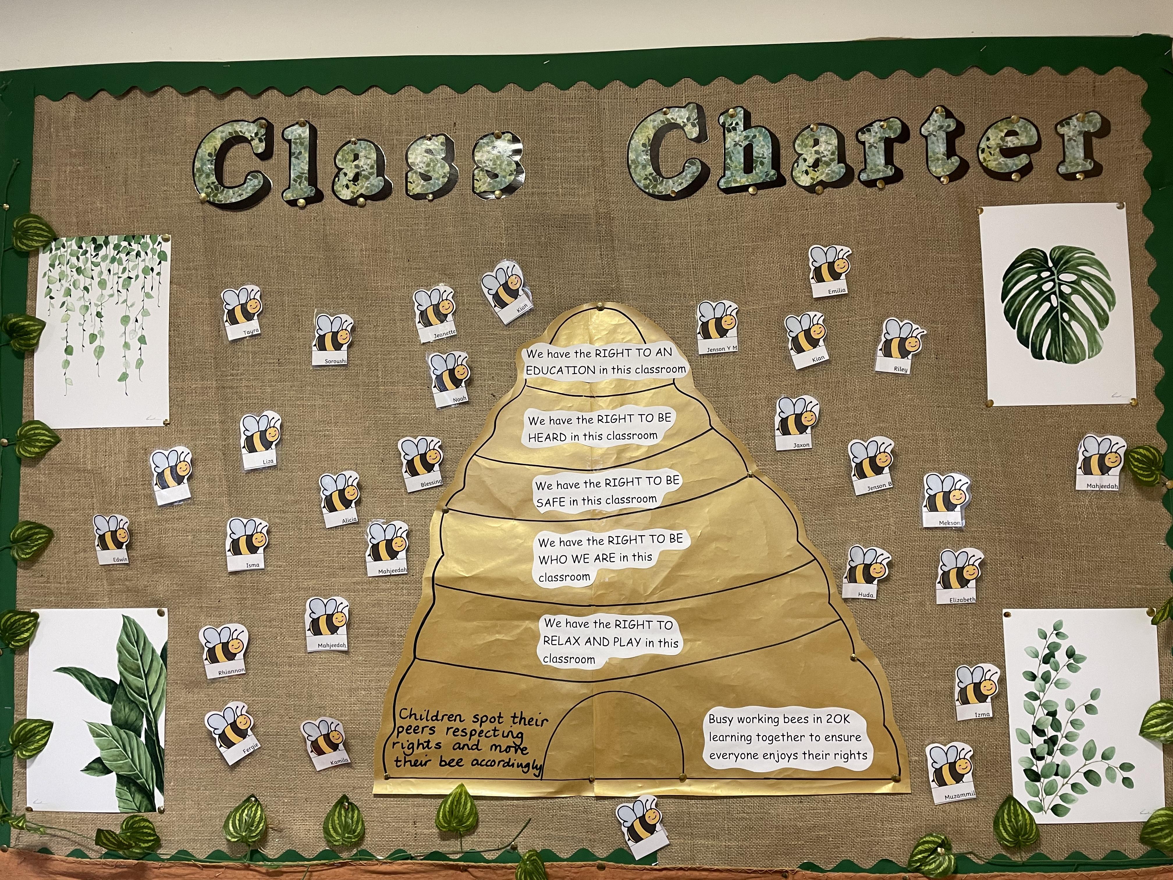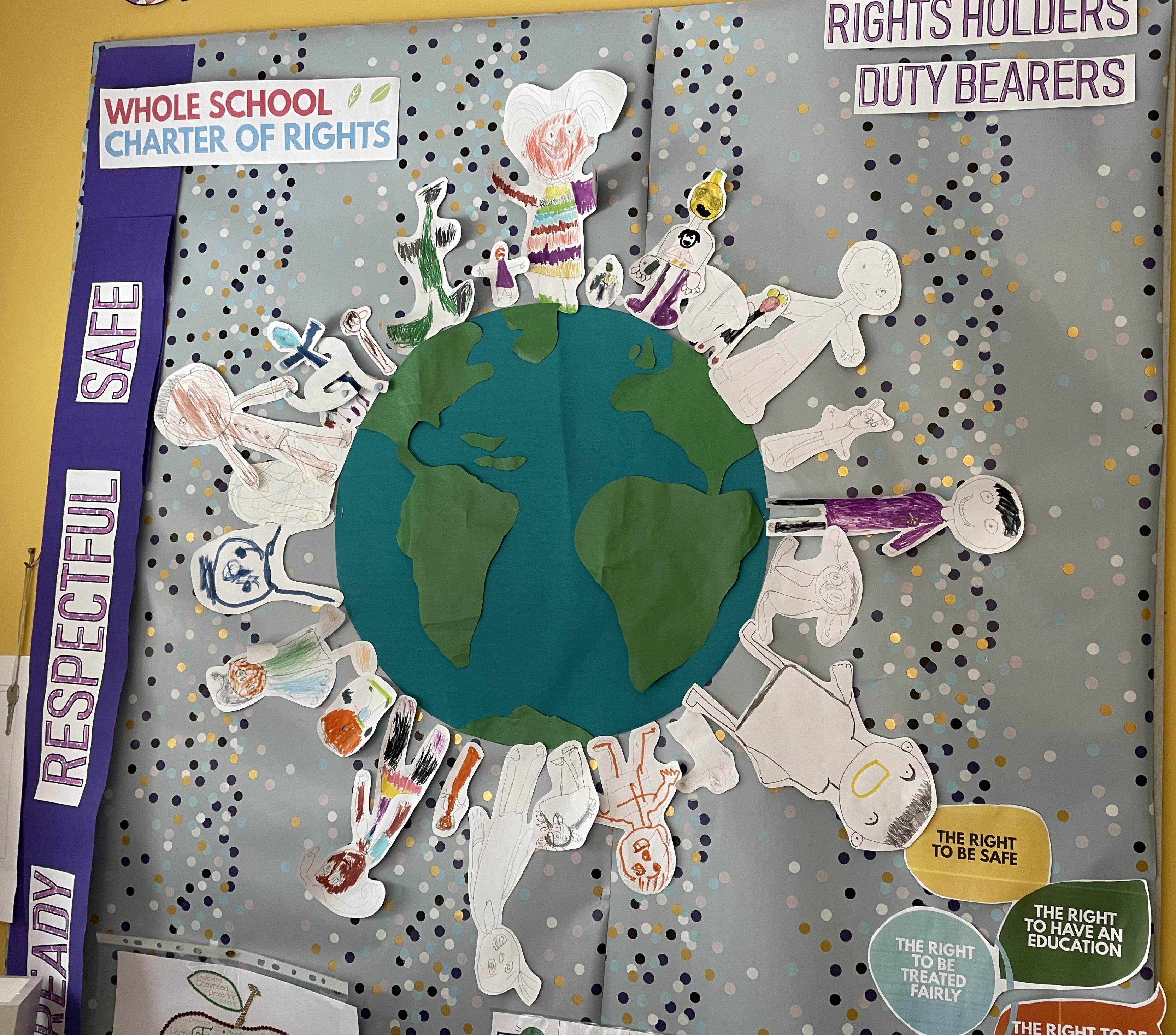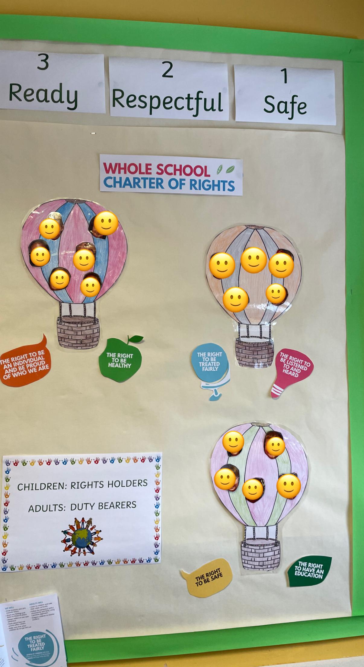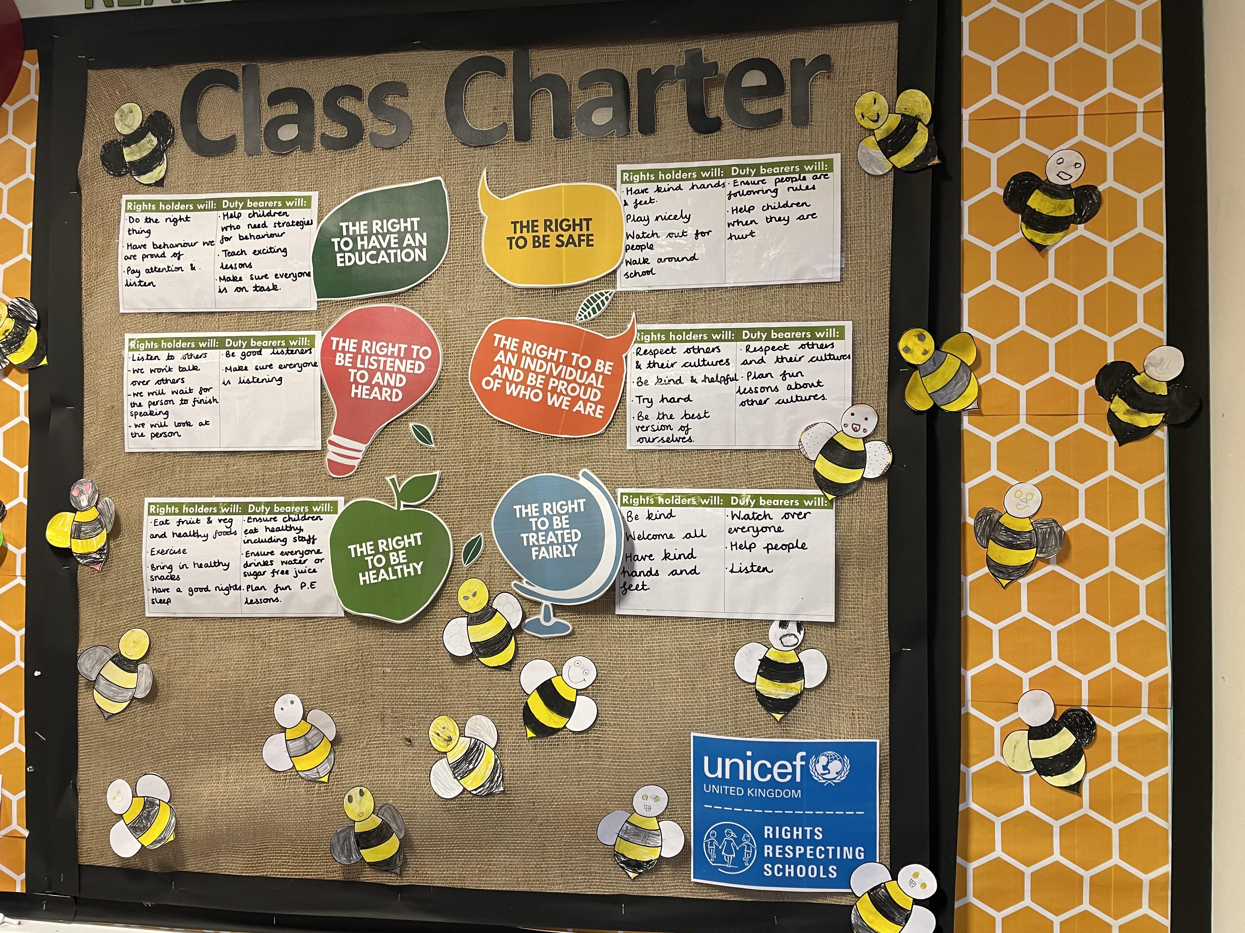 At the start of the academic year, all classes create a staff charter. Together, children and staff decide on what they think are the most important Articles (rights) for their classroom. Everyone agrees to their class charter and signs it in their own way. These class charters are changed and adapted when necessary. The duty bearers (adults) help the children to follow, understand and reflect on the rights.