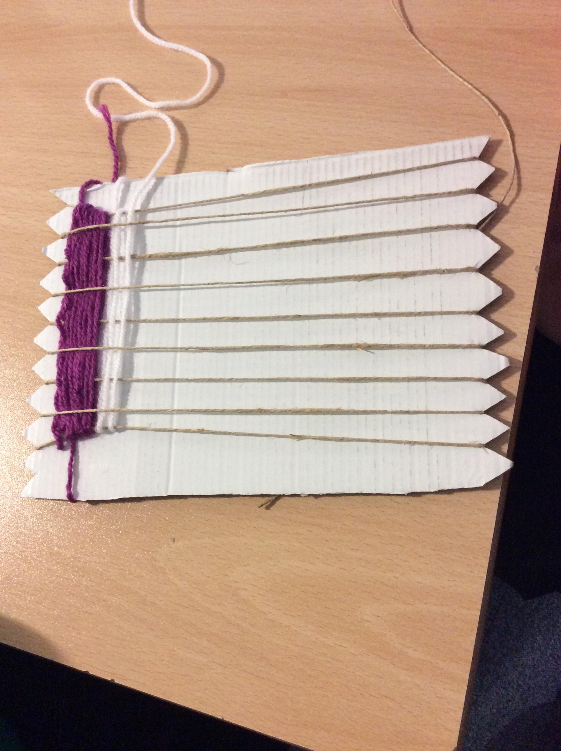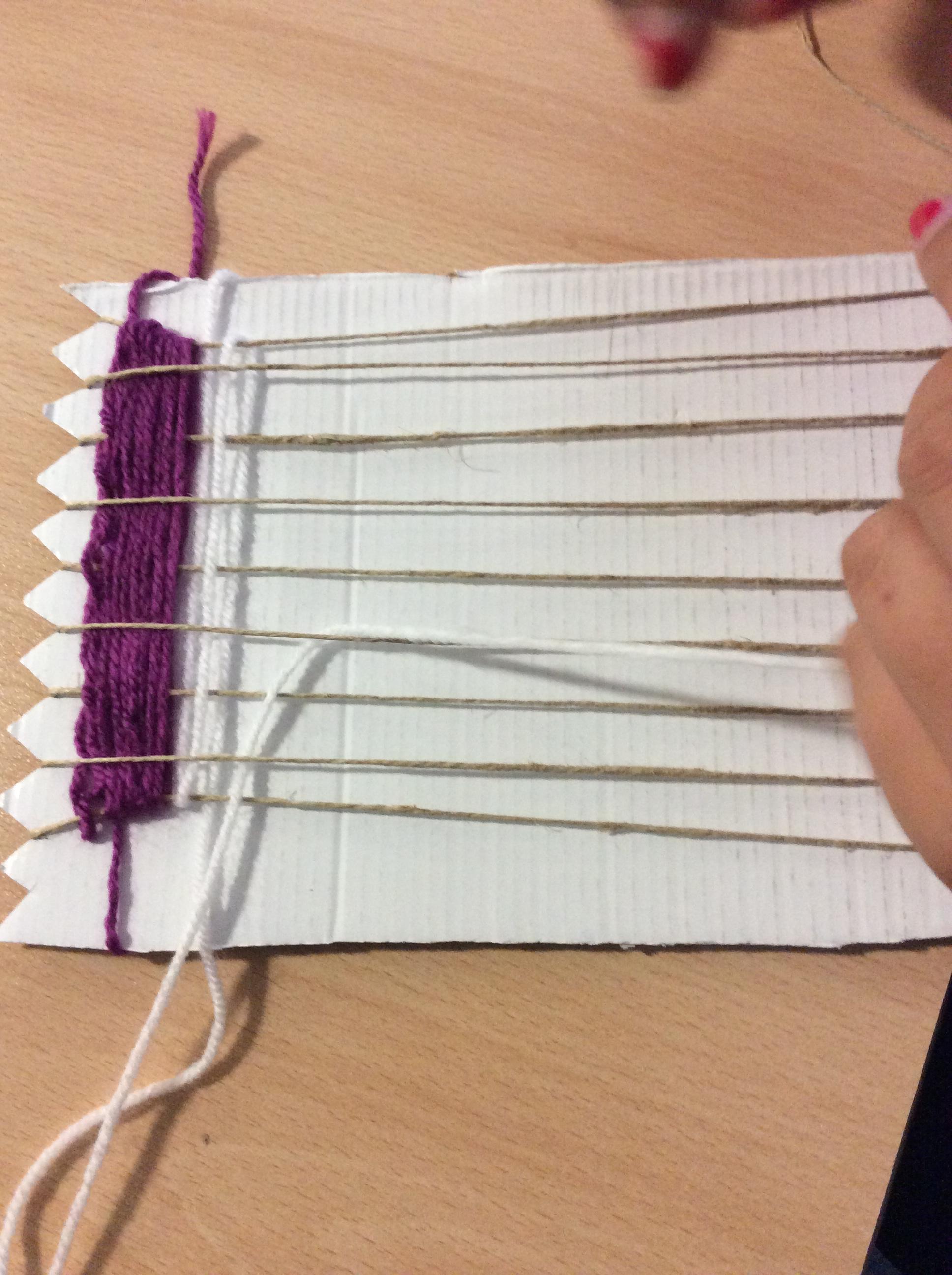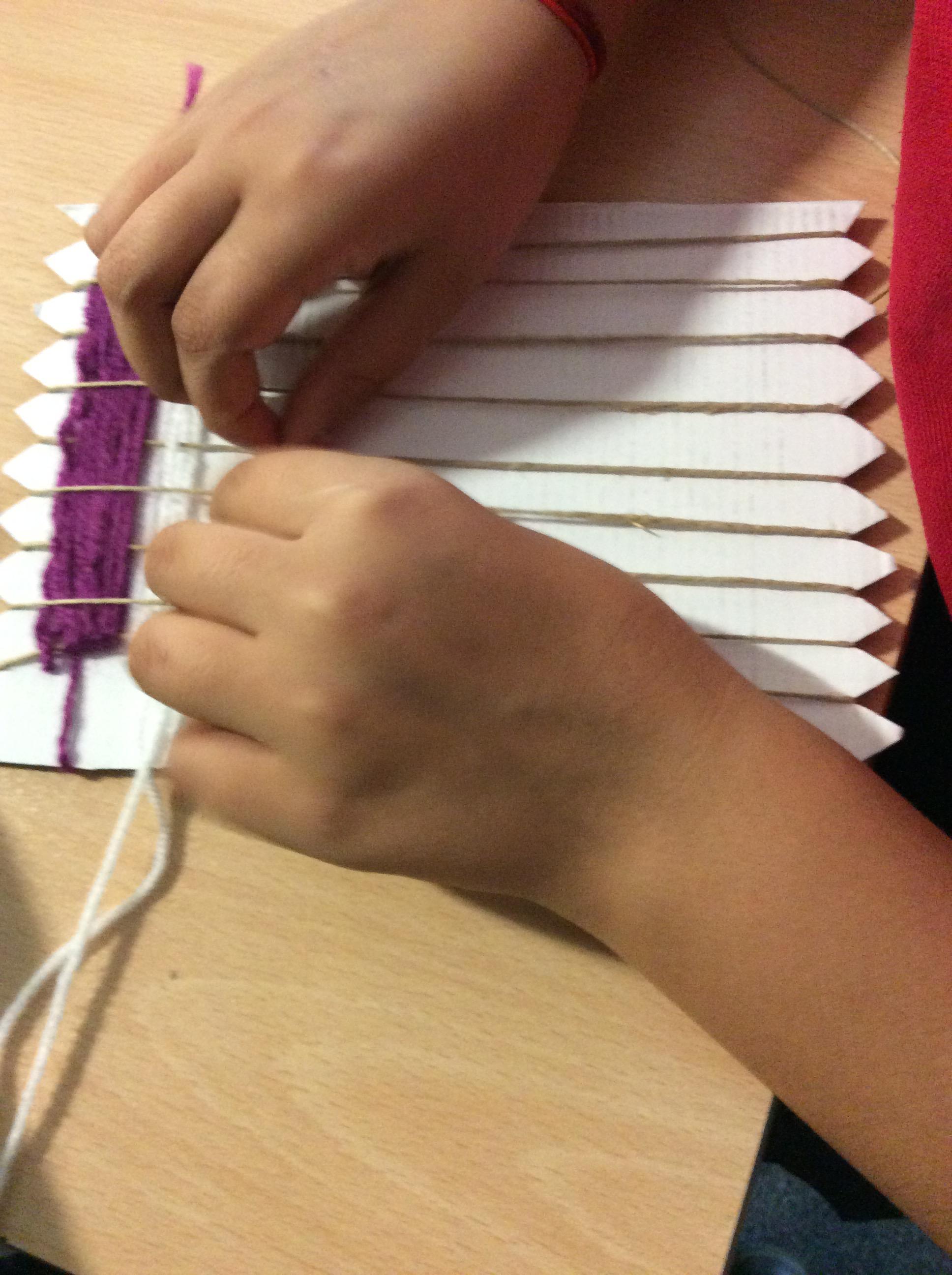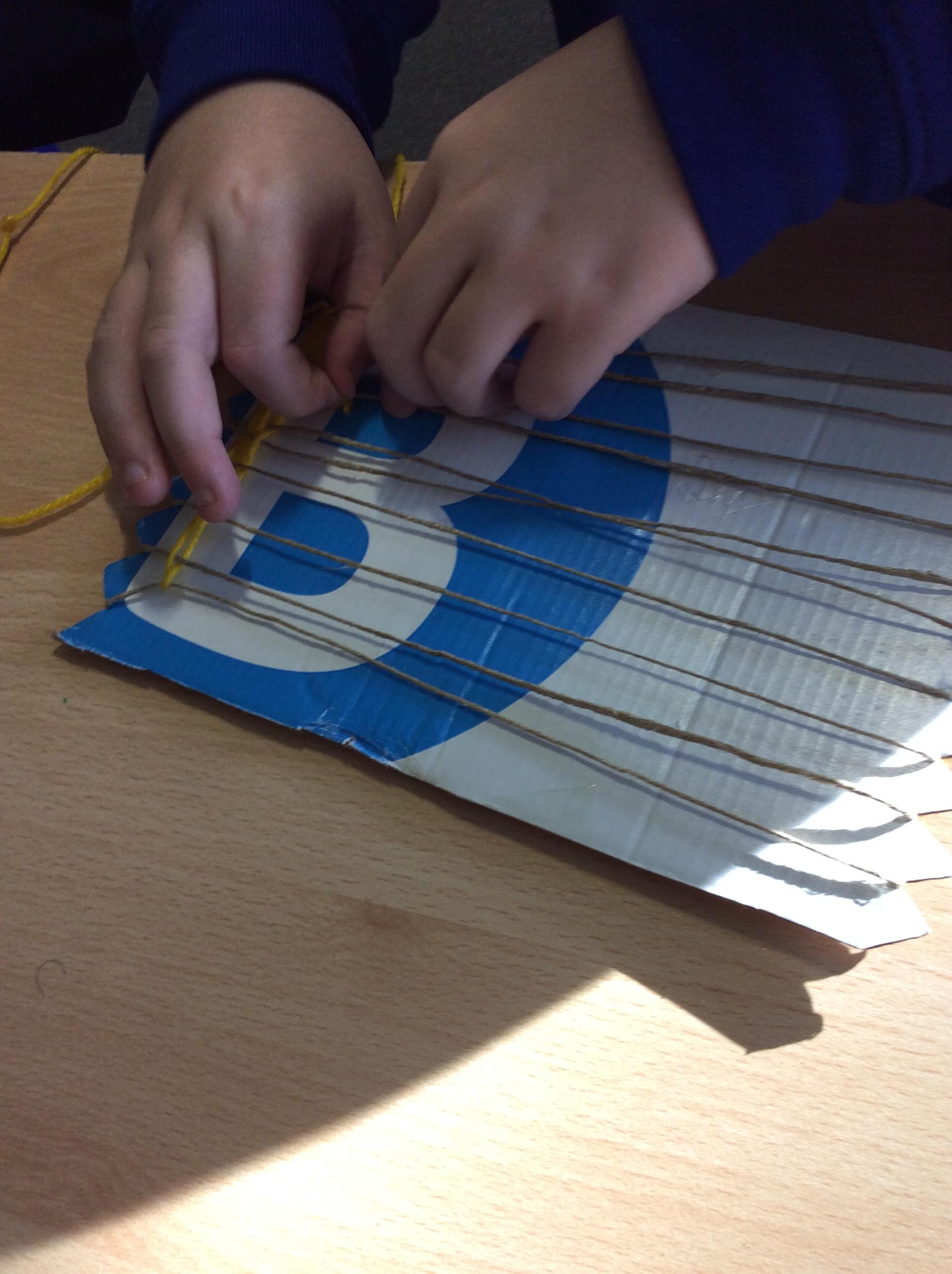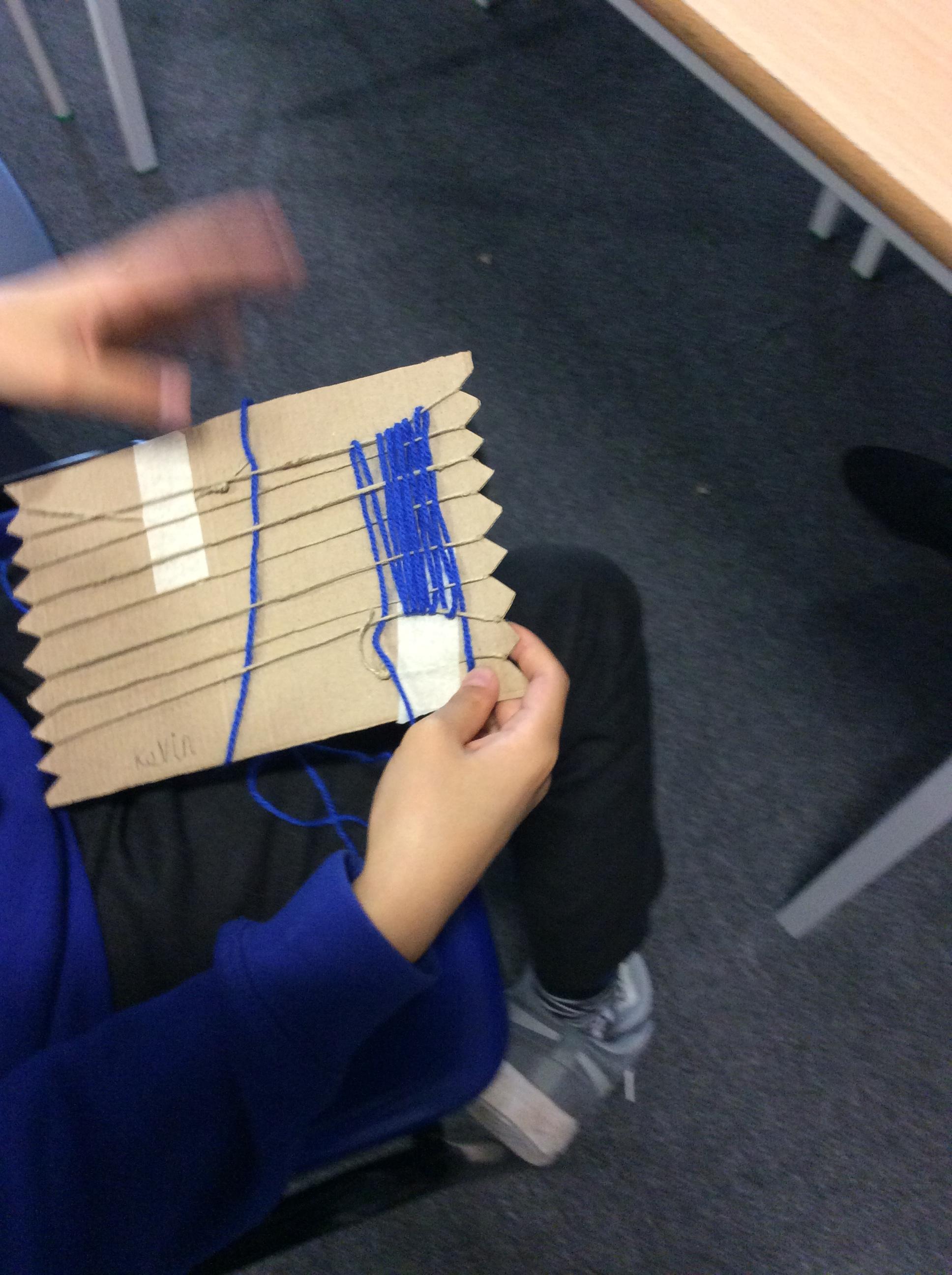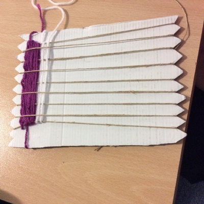 This week we have been weaving wool on a hand-made loom.