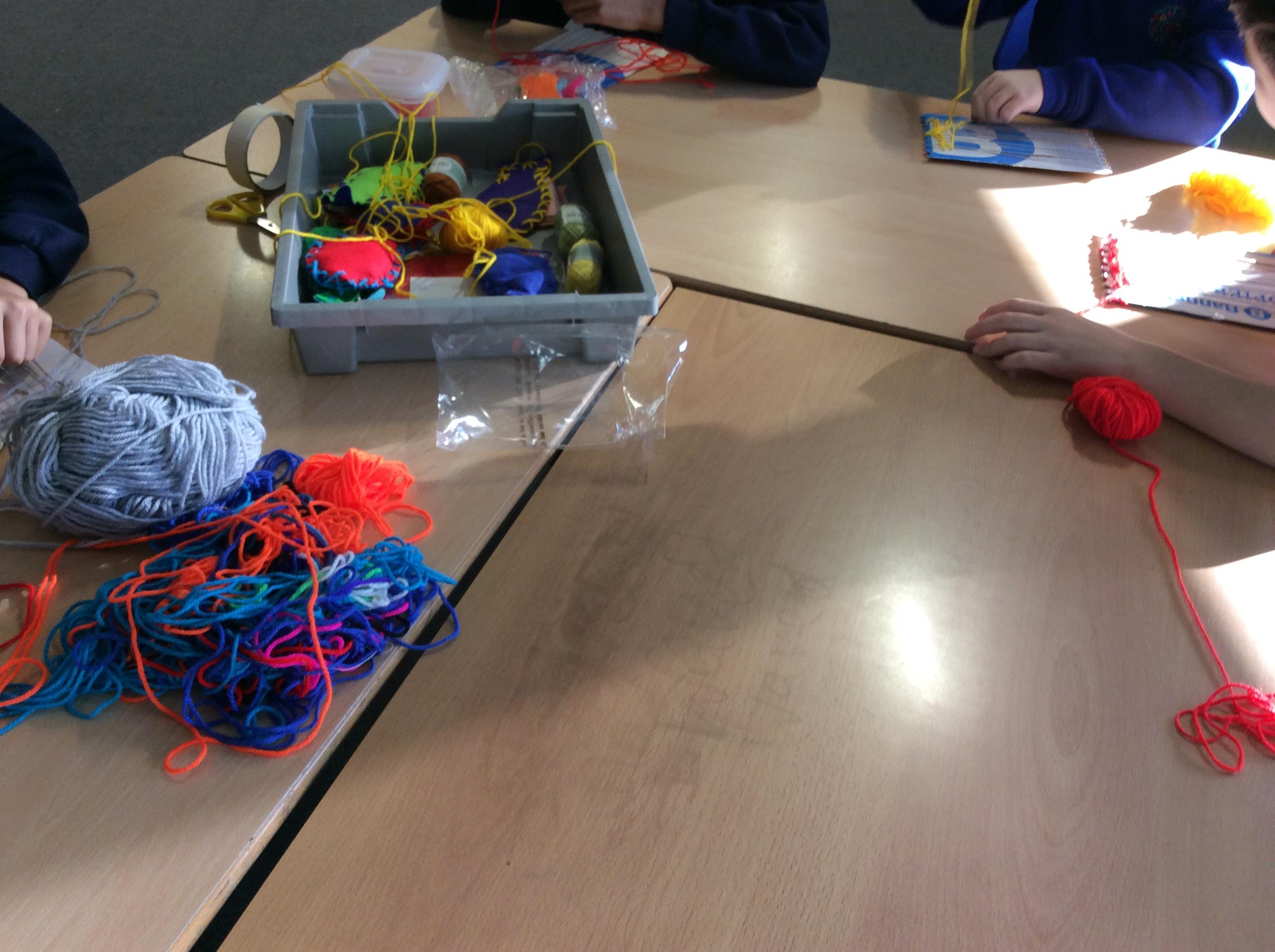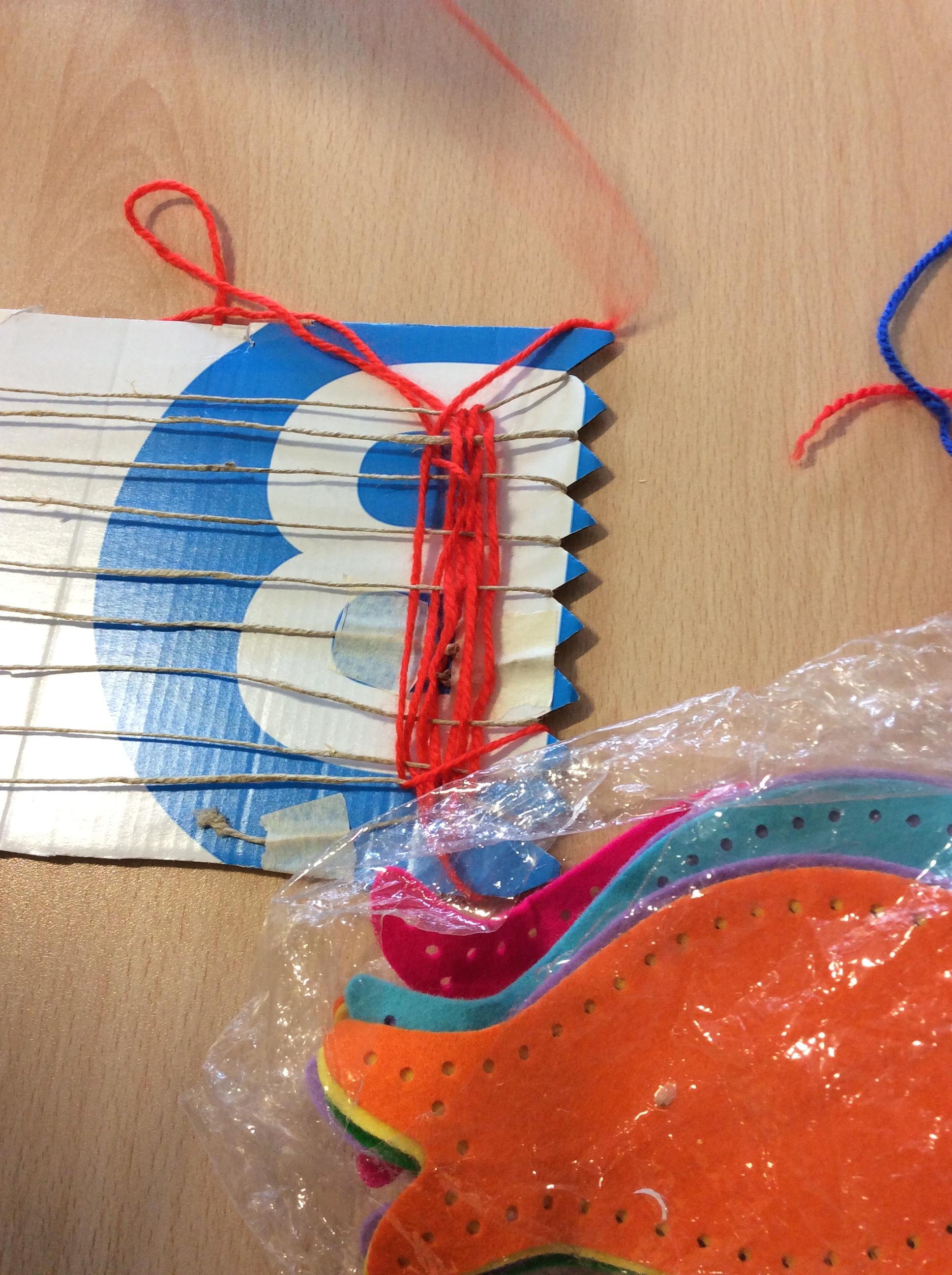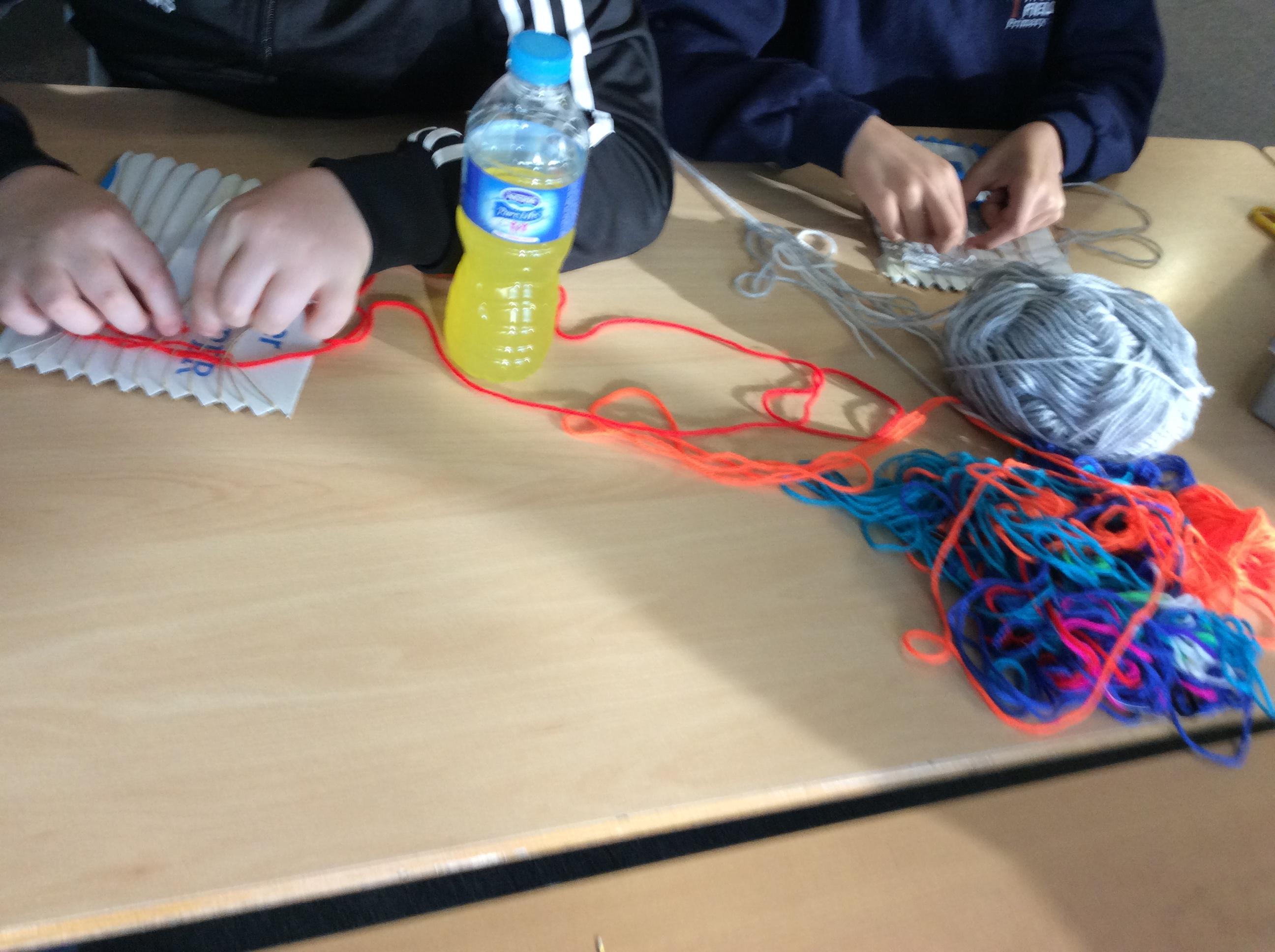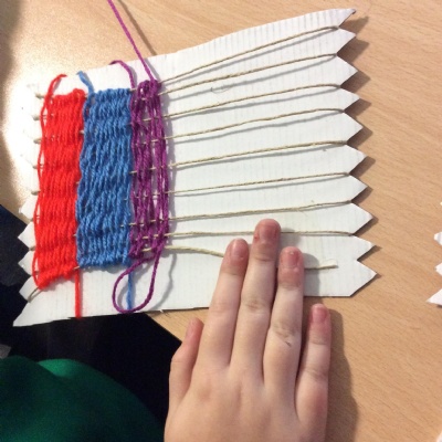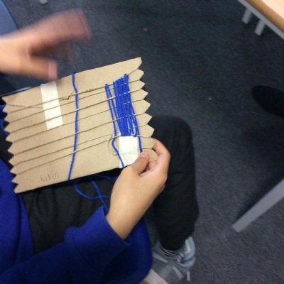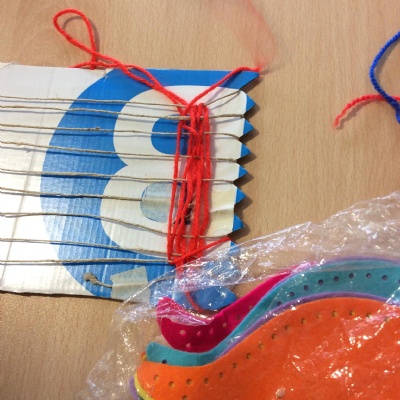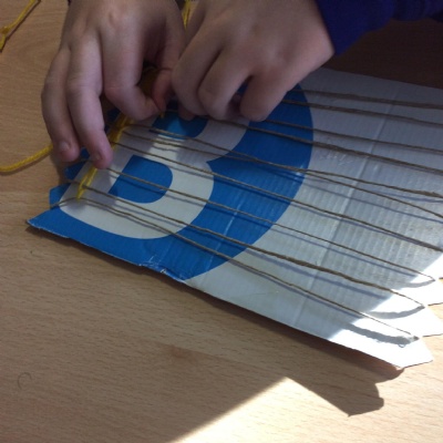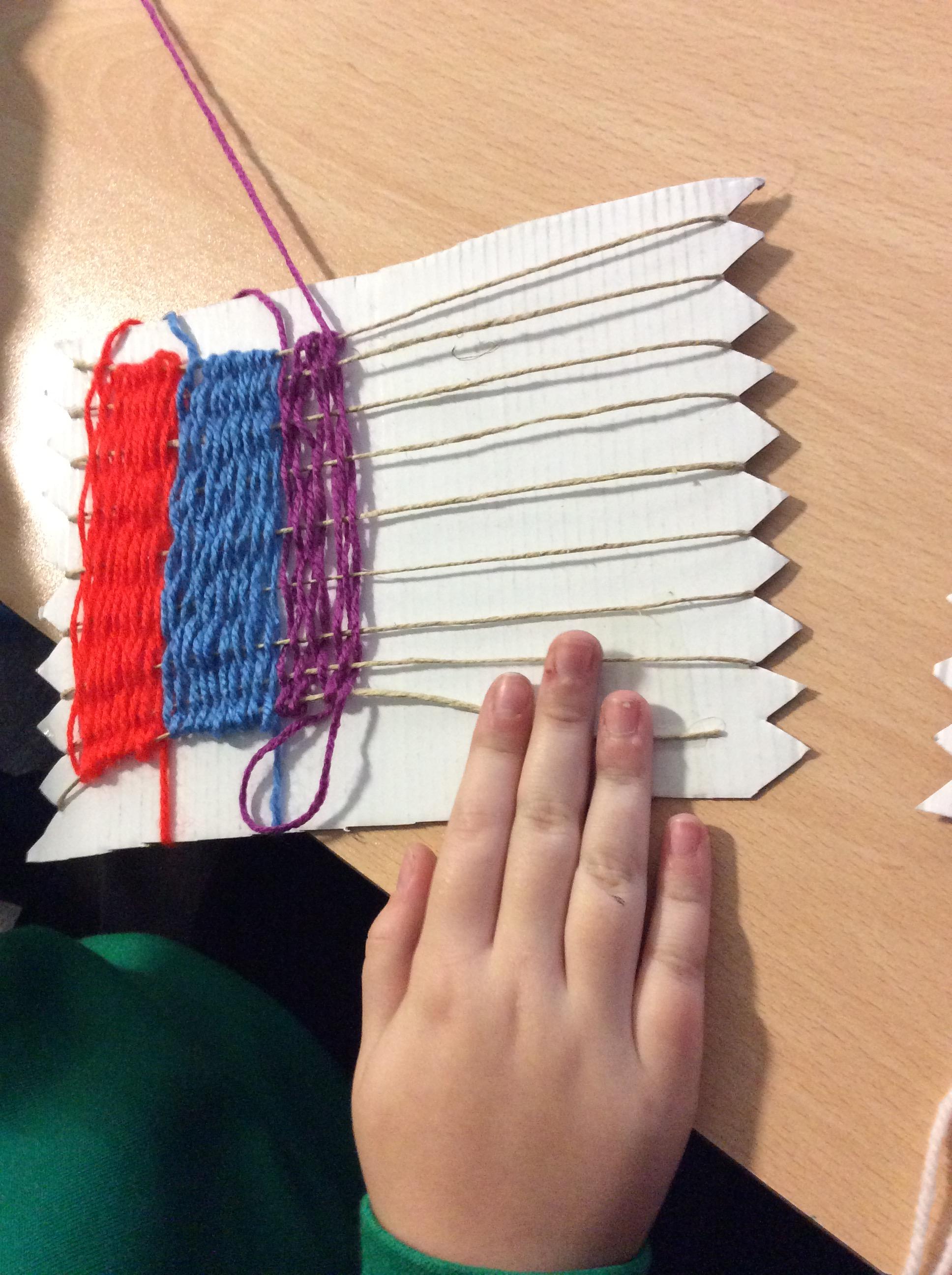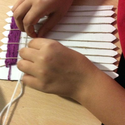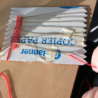 This week we have been weaving wool on a hand-made loom.