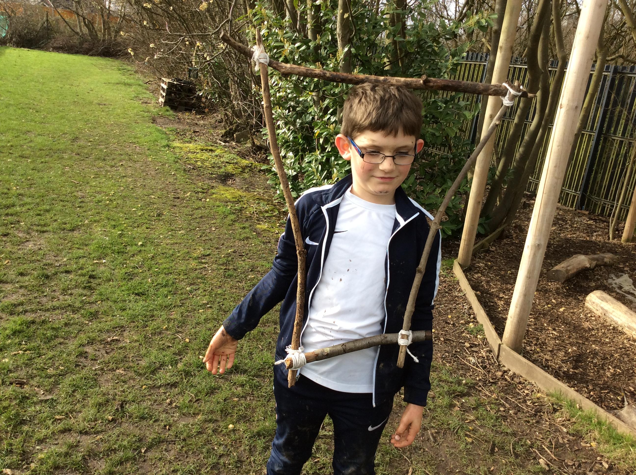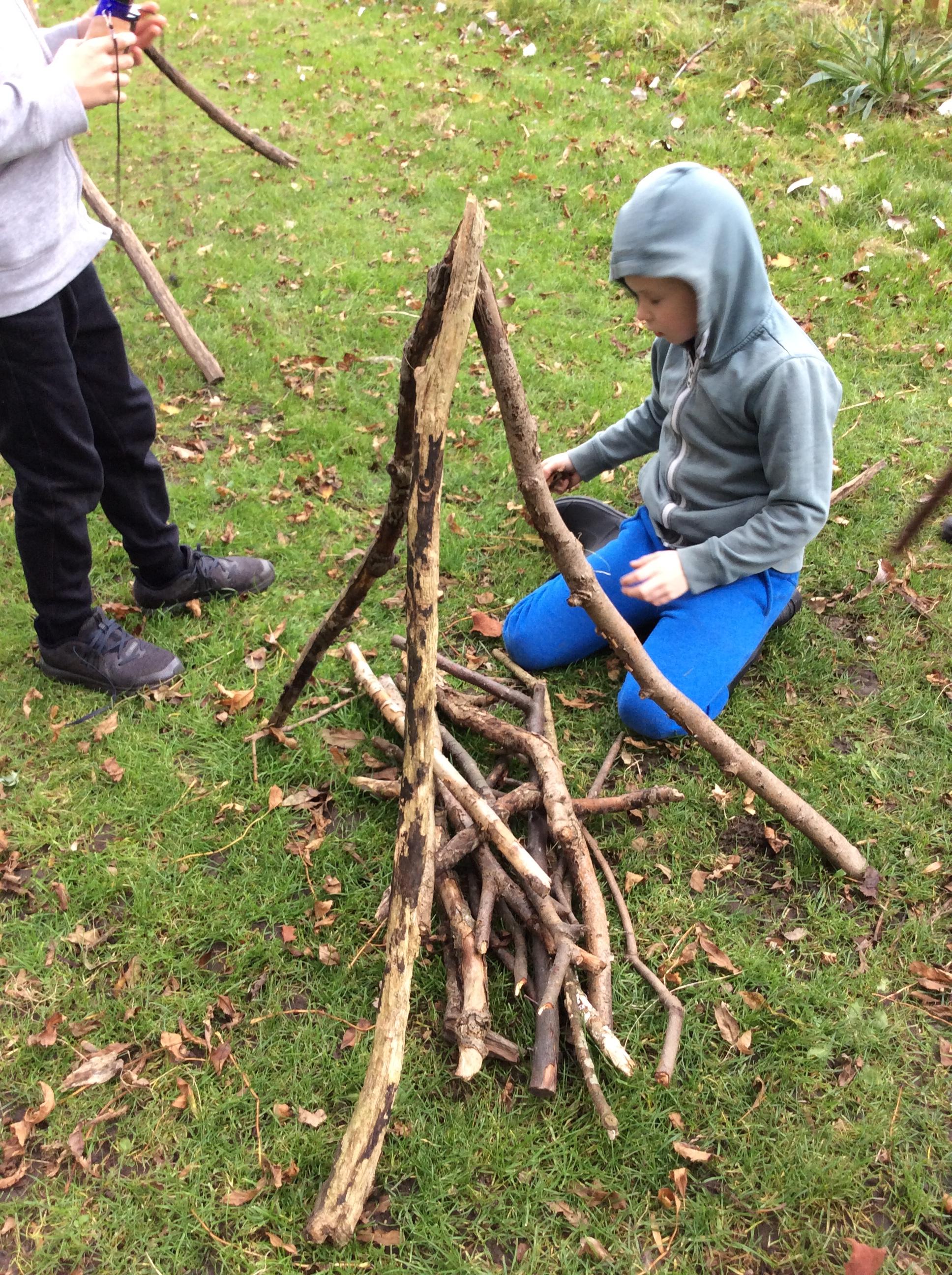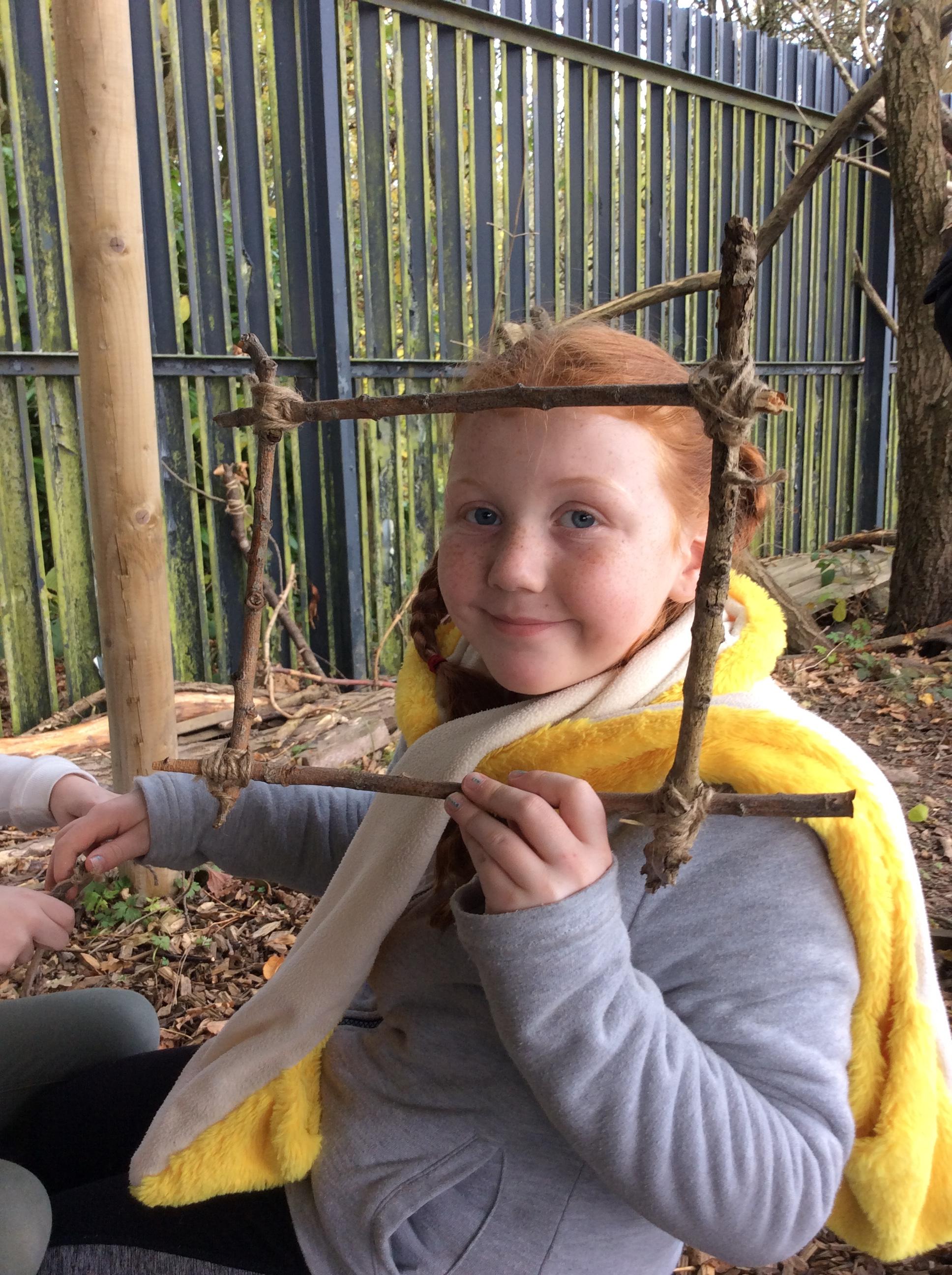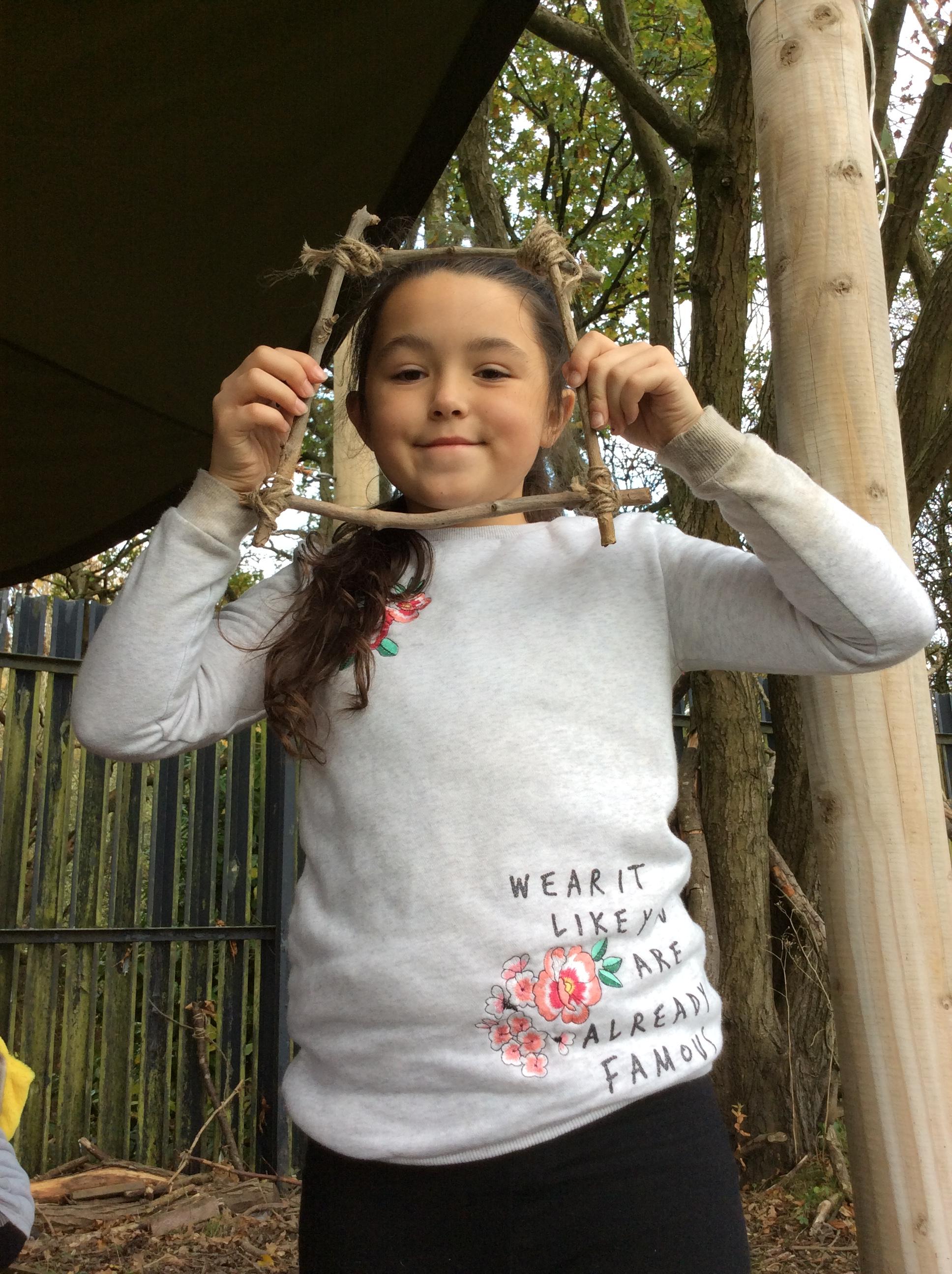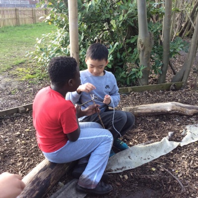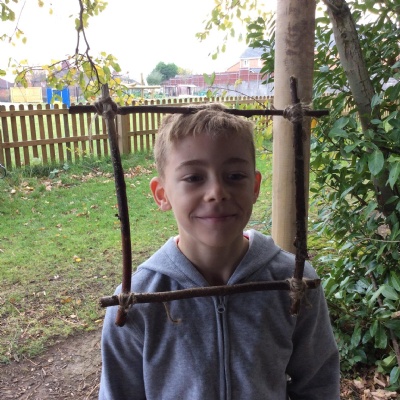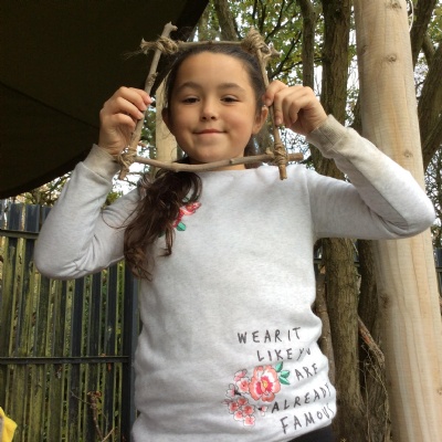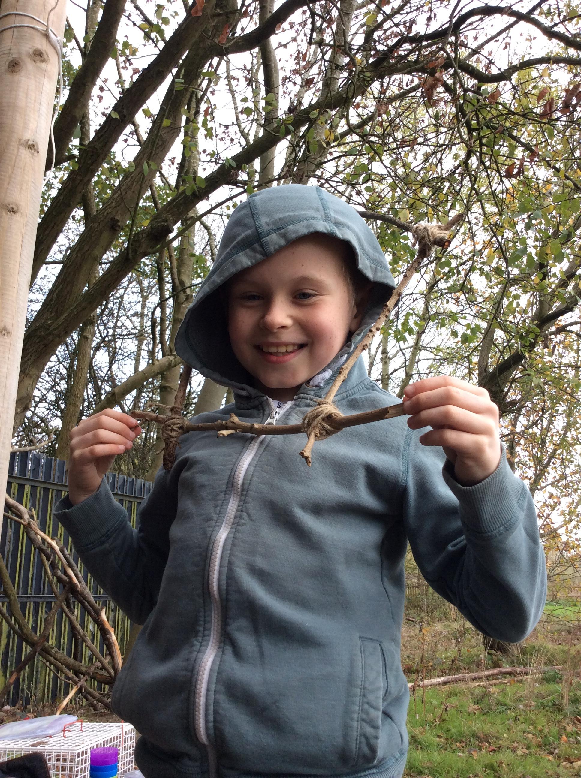 We created our own tools to make Autumn leaf bunting and practised tying simple knots.