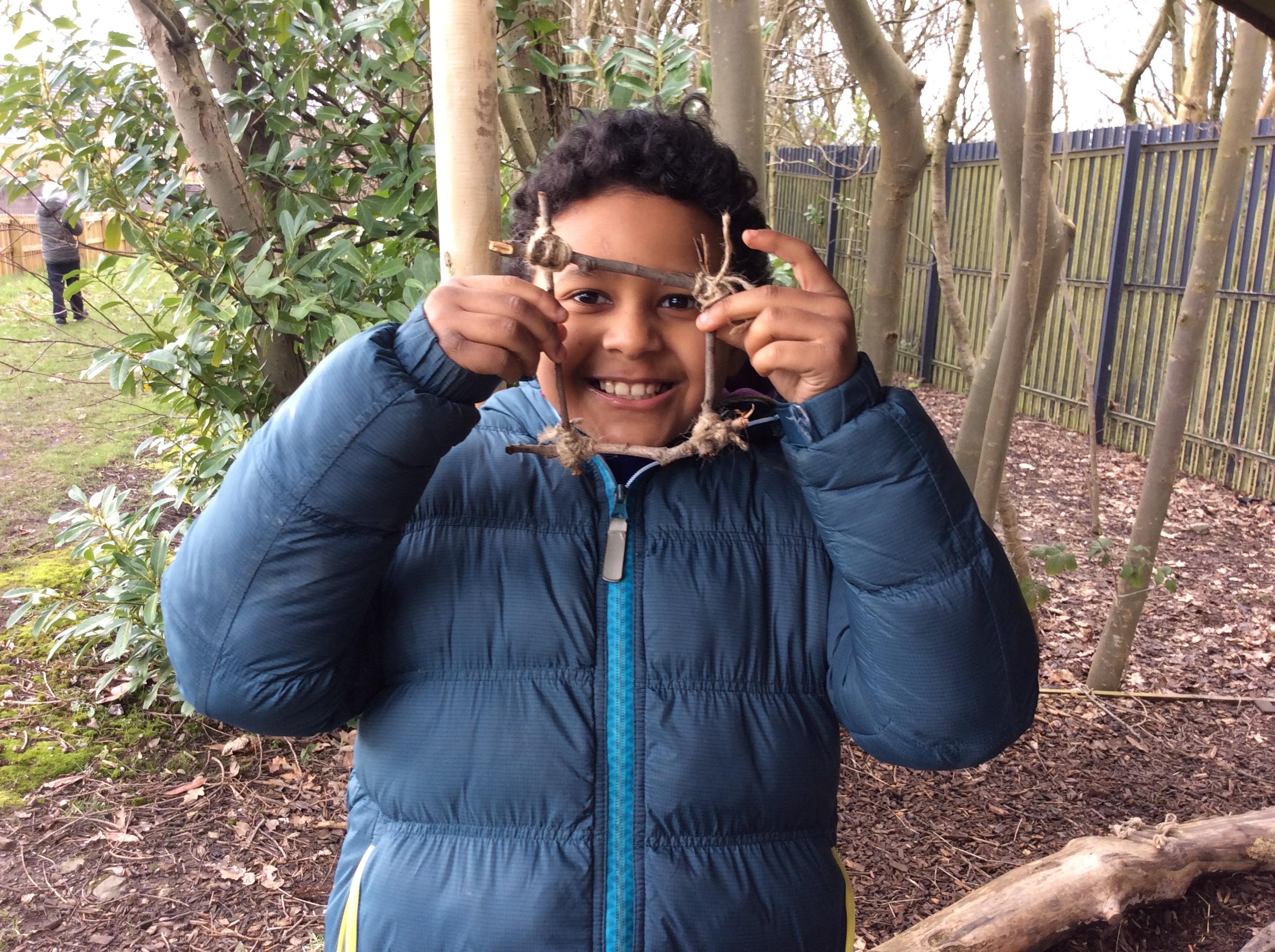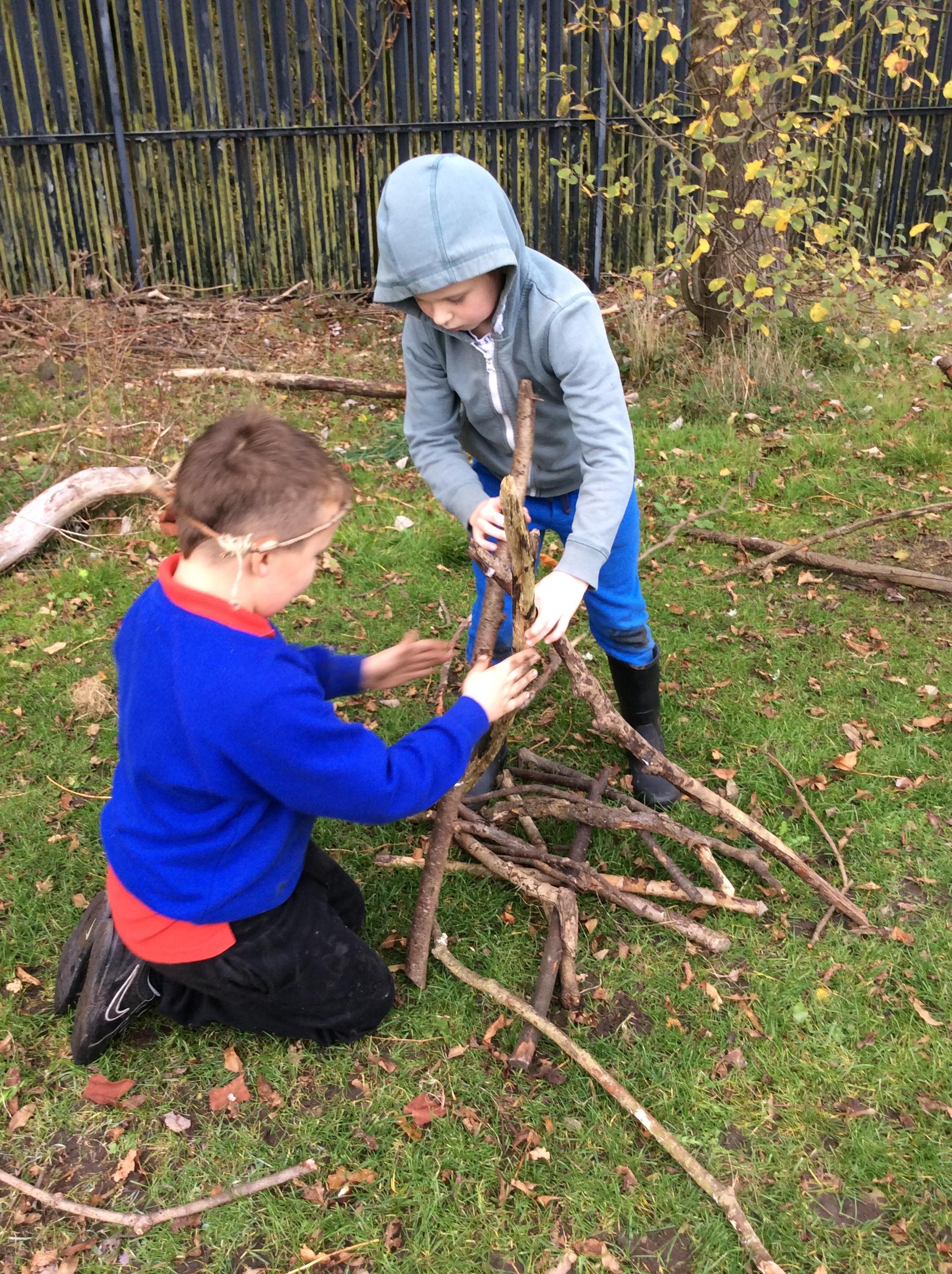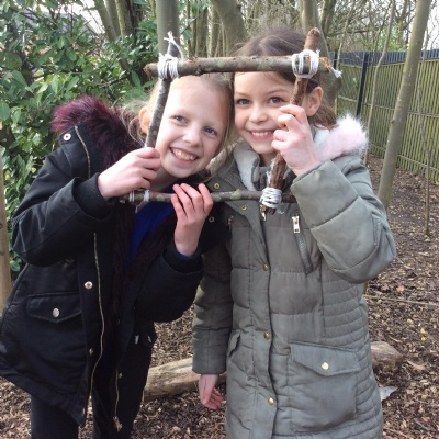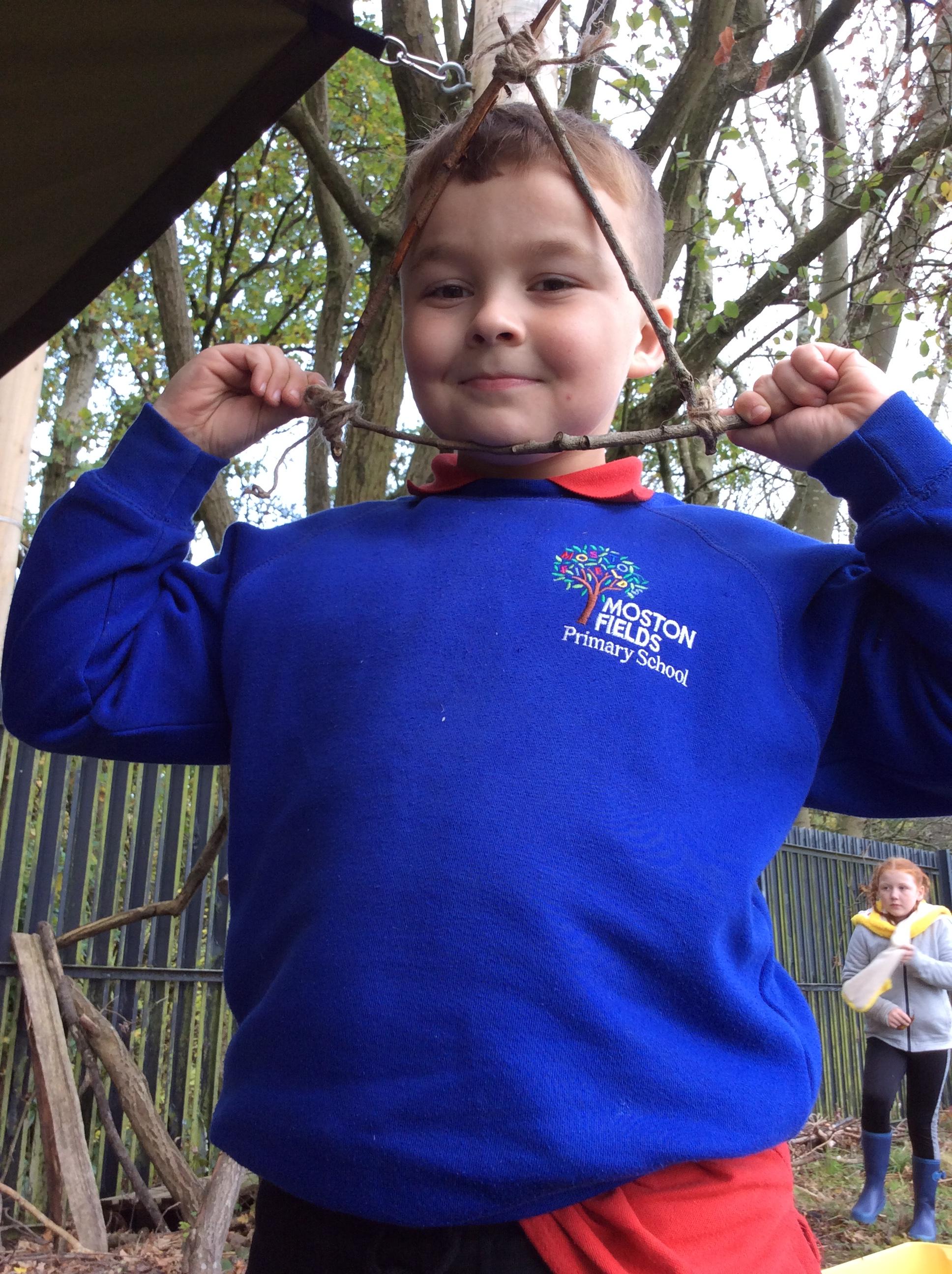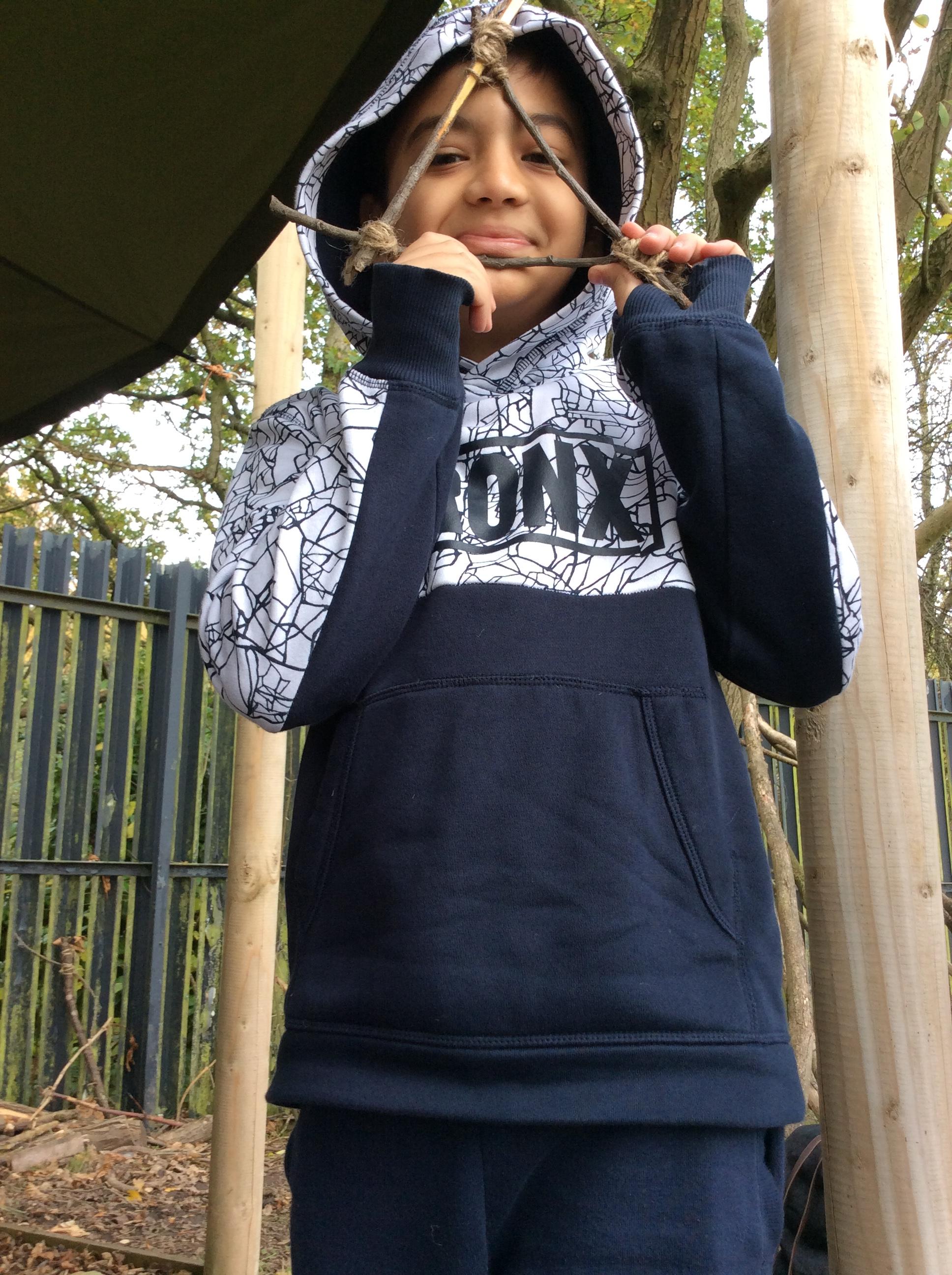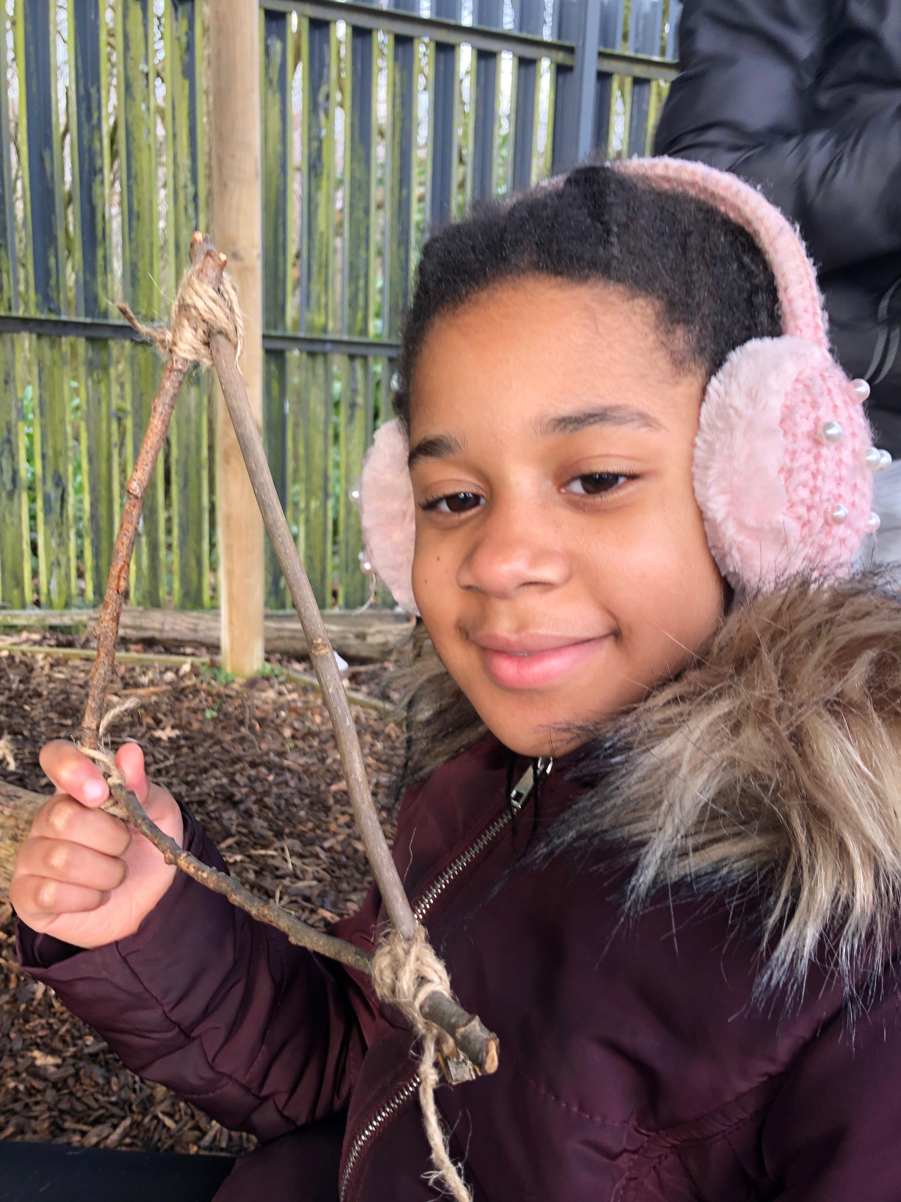 We created our own tools to make Autumn leaf bunting and practised tying simple knots.