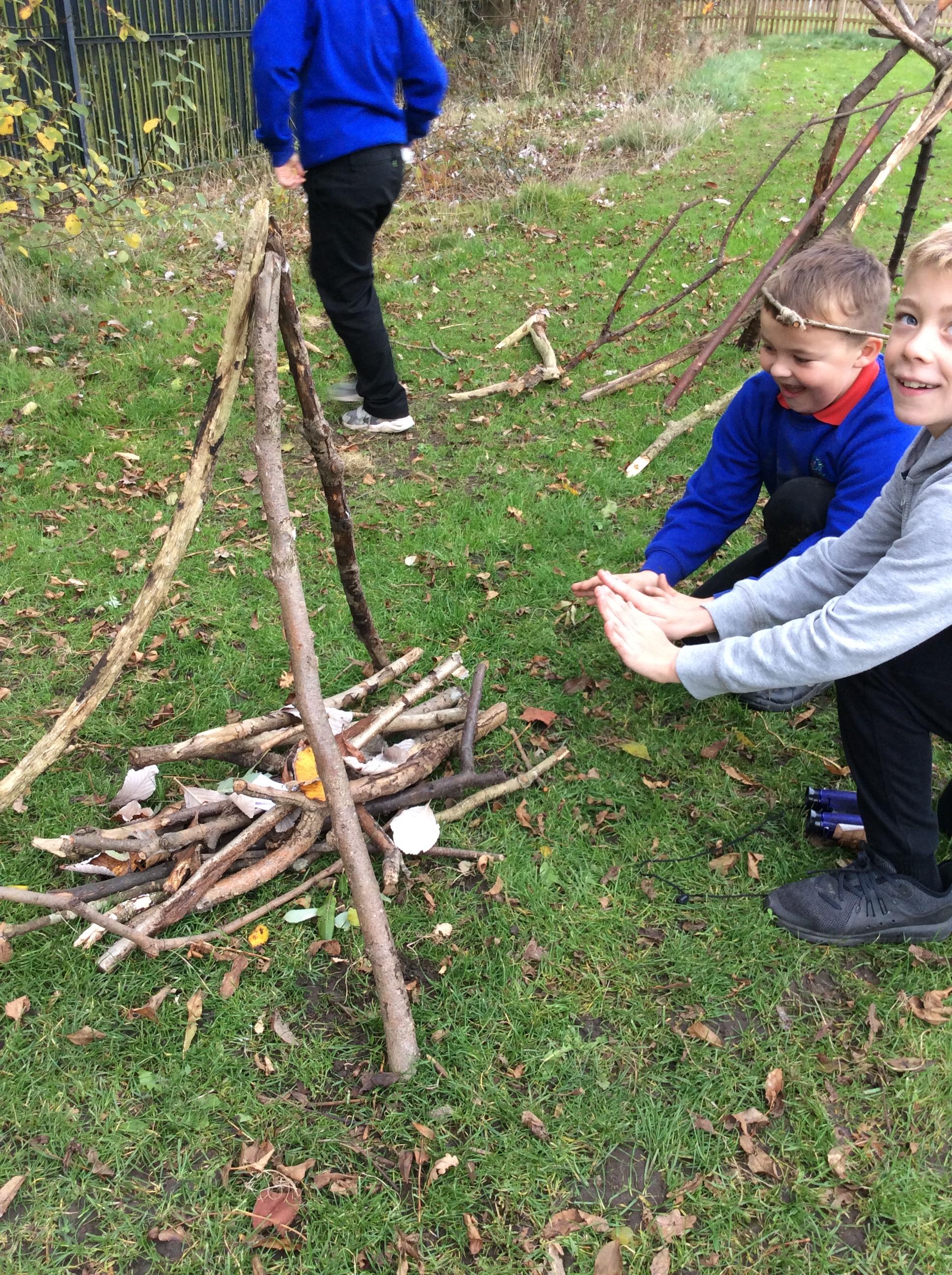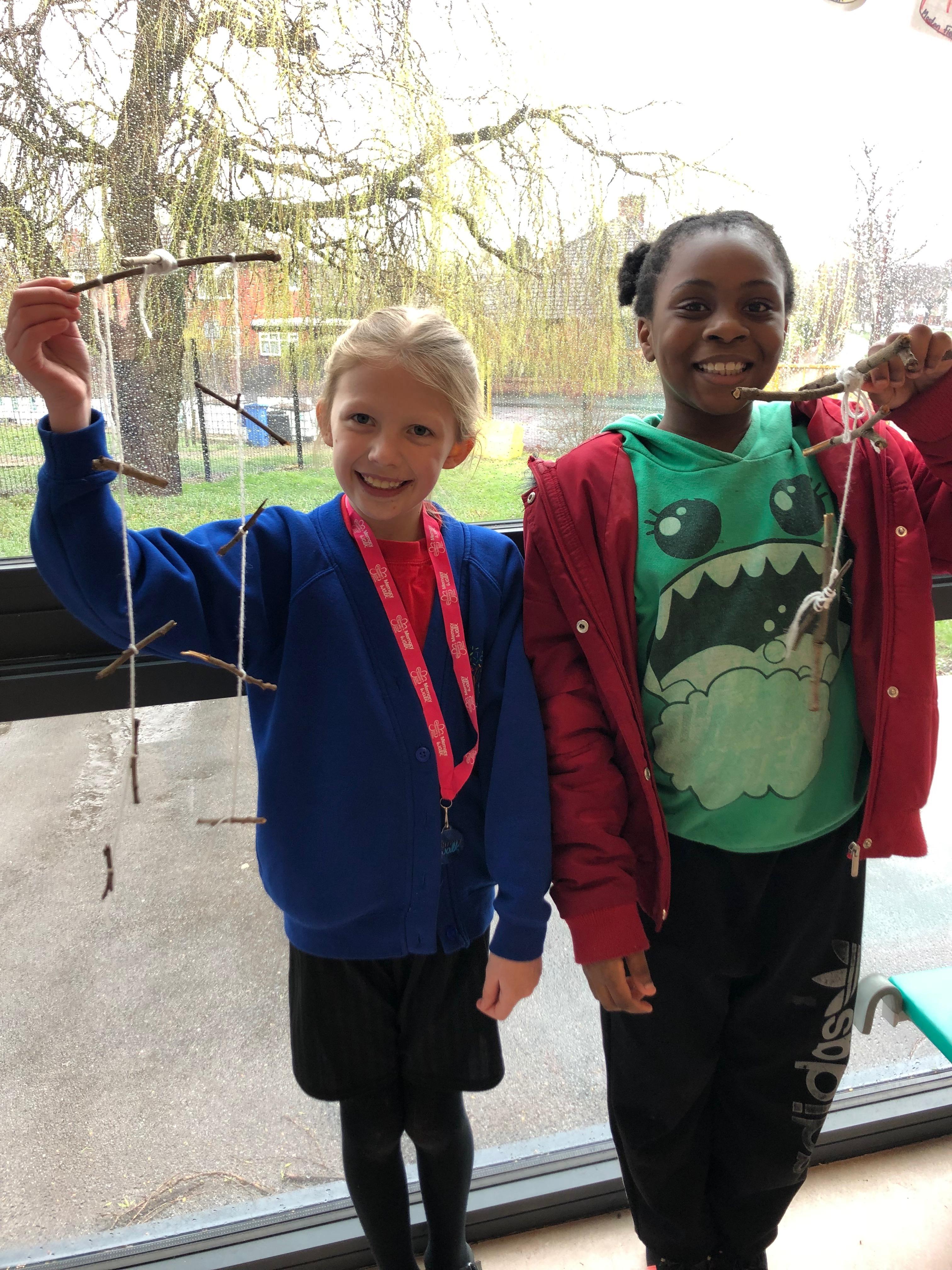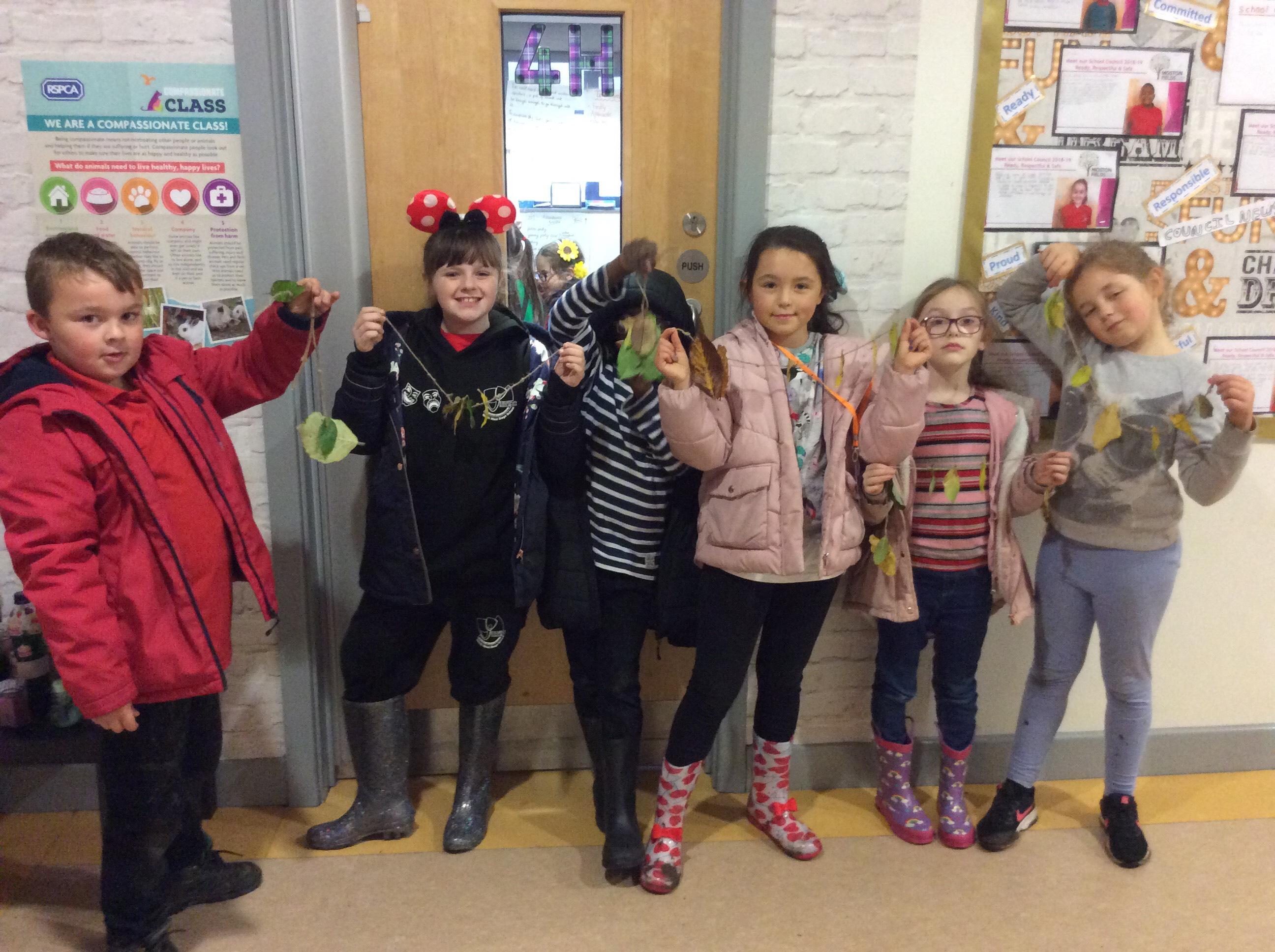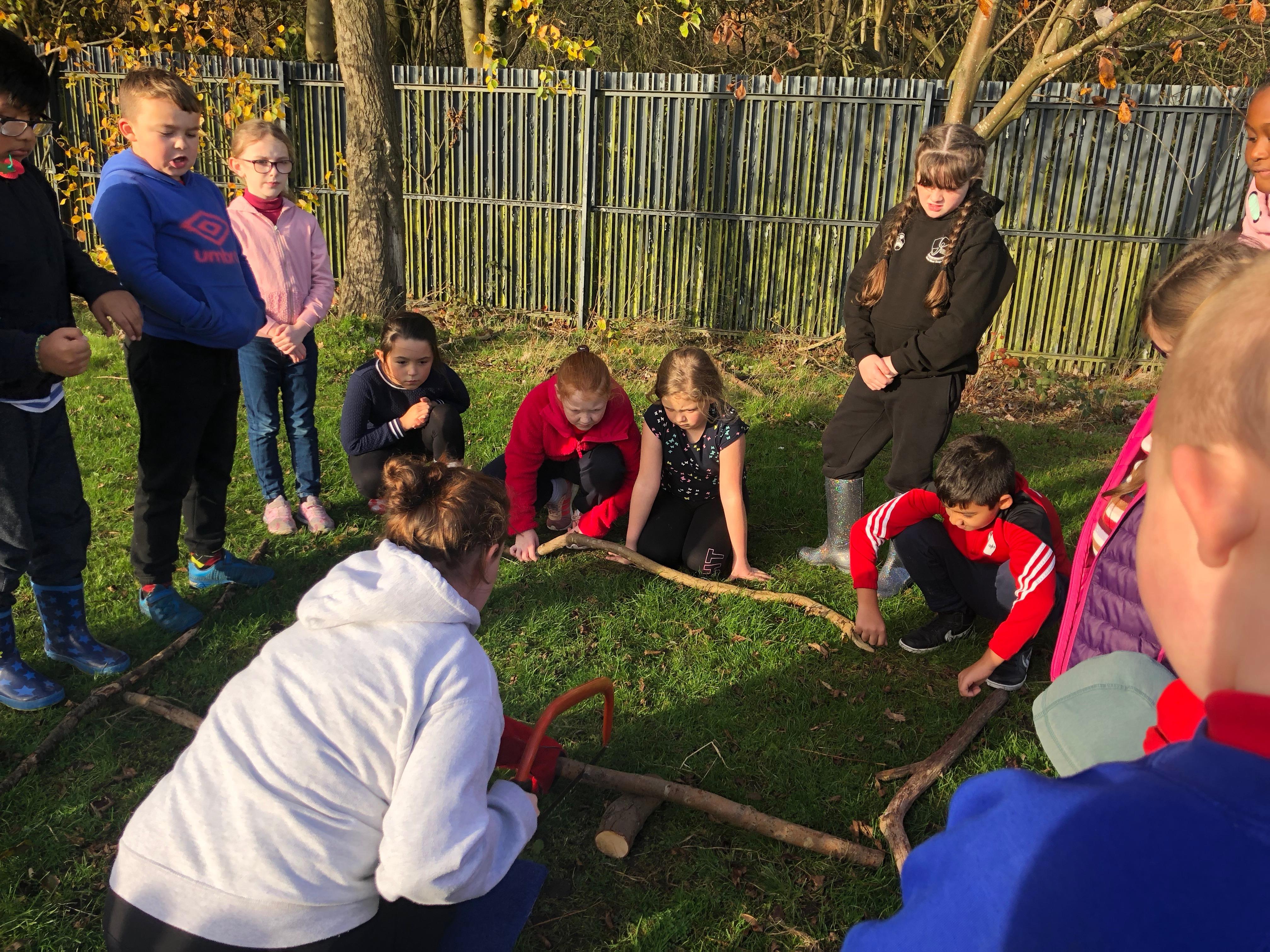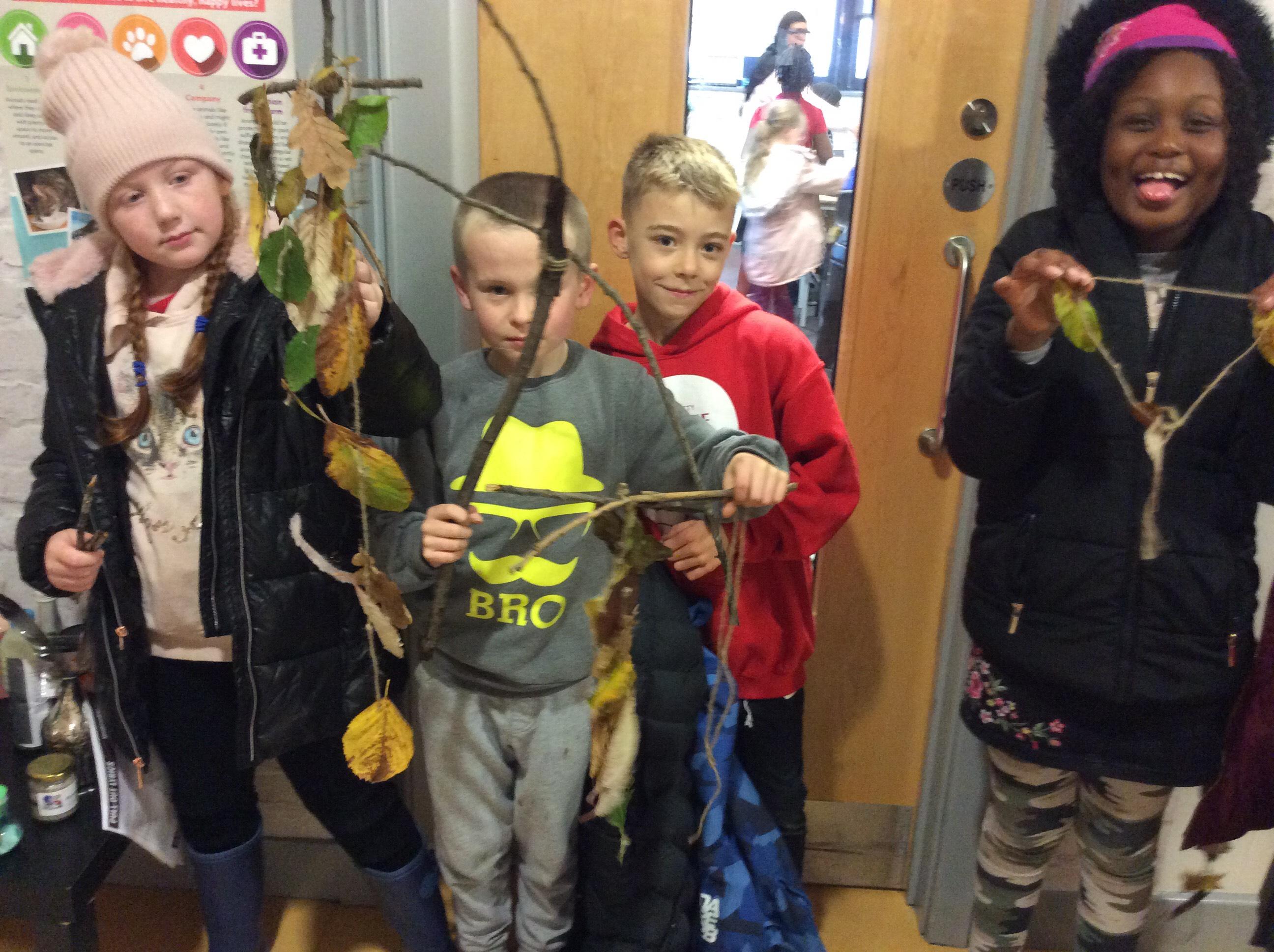 We created our own tools to make Autumn leaf bunting and practised tying simple knots.