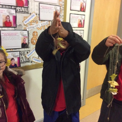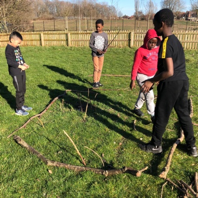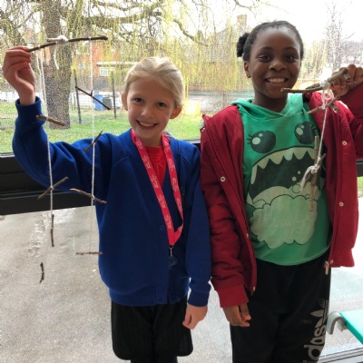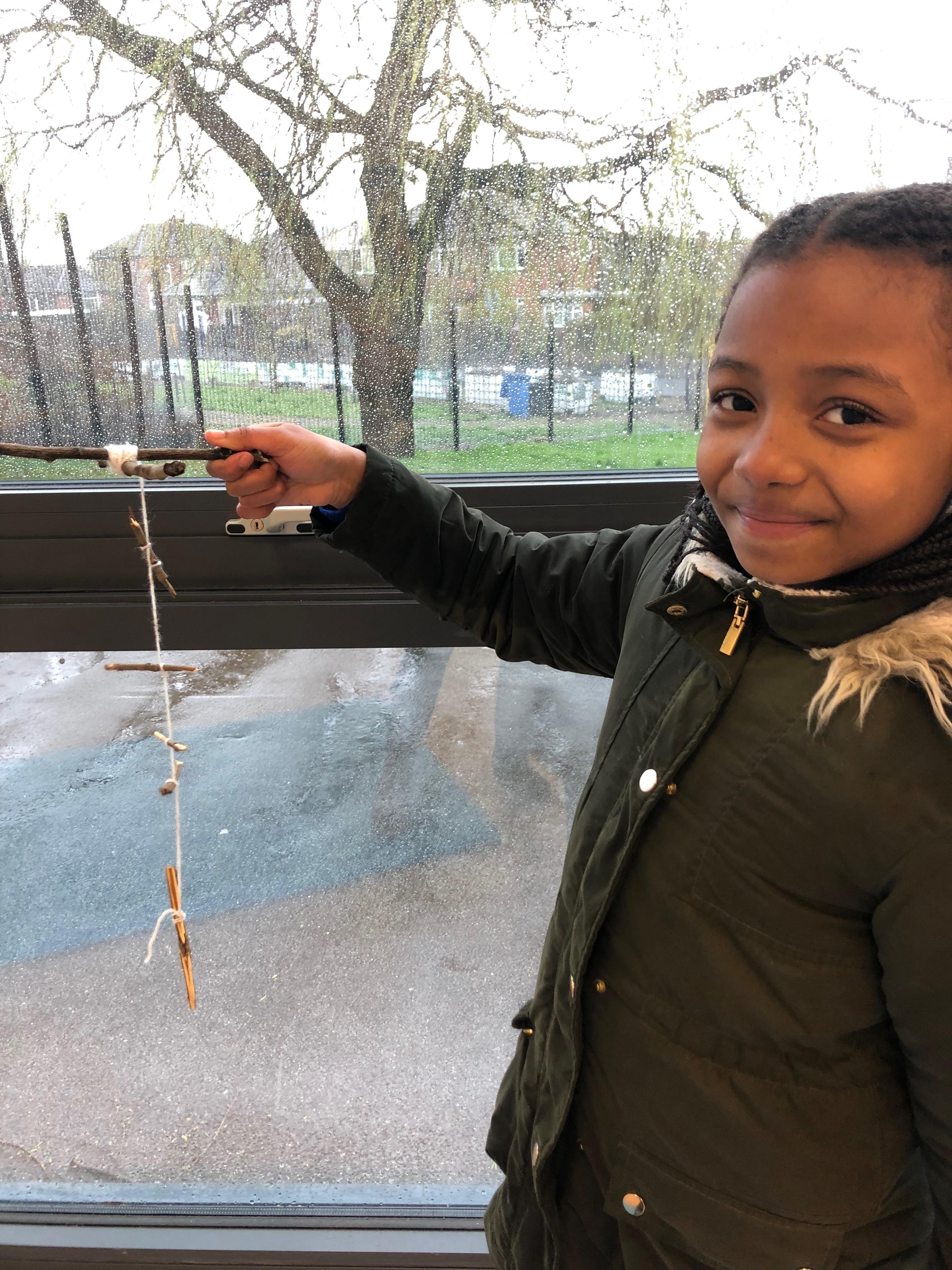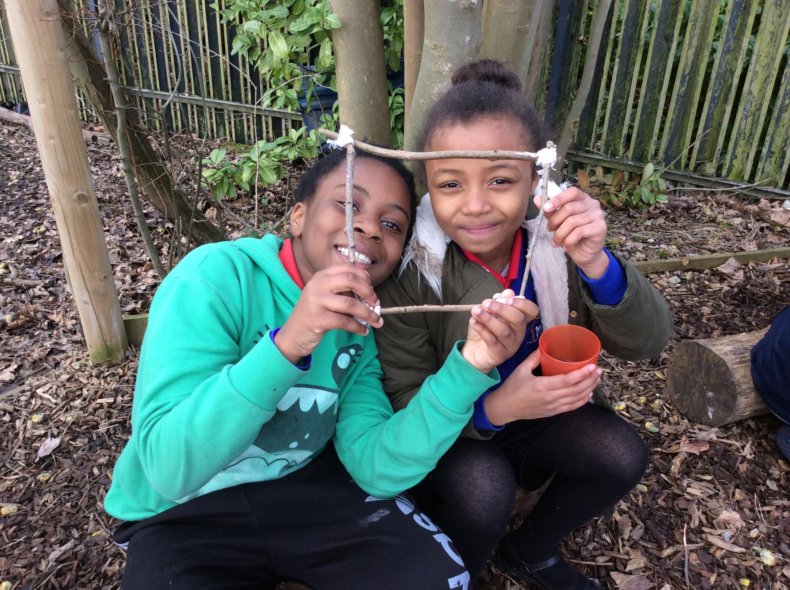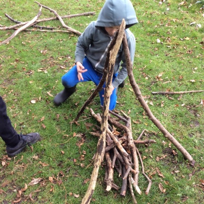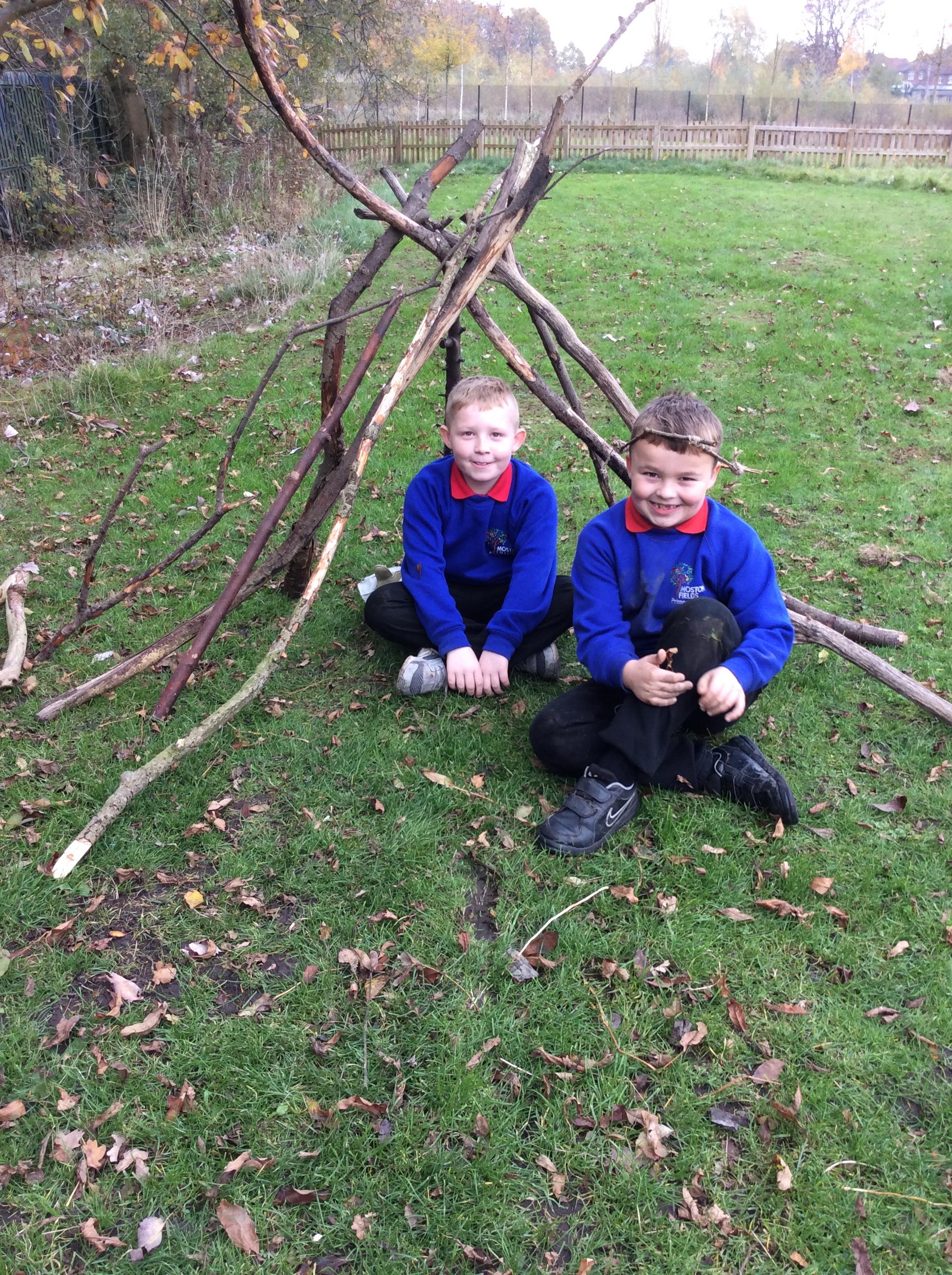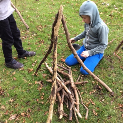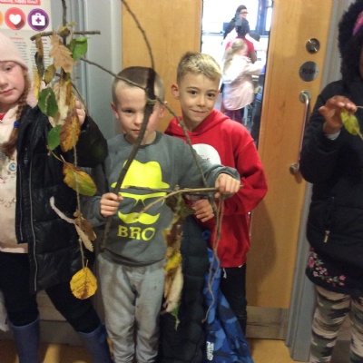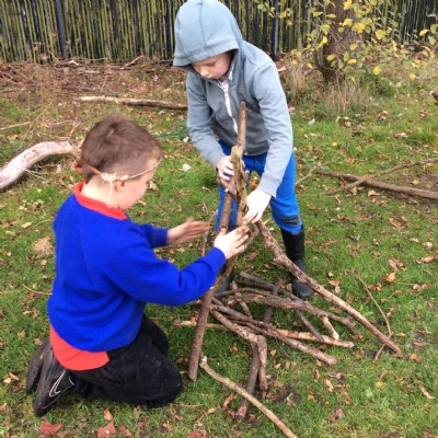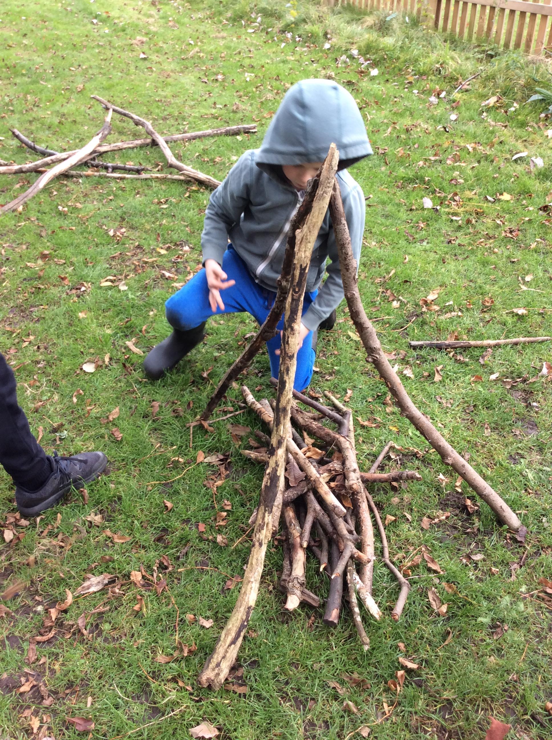We created our own tools to make Autumn leaf bunting and practised tying simple knots.