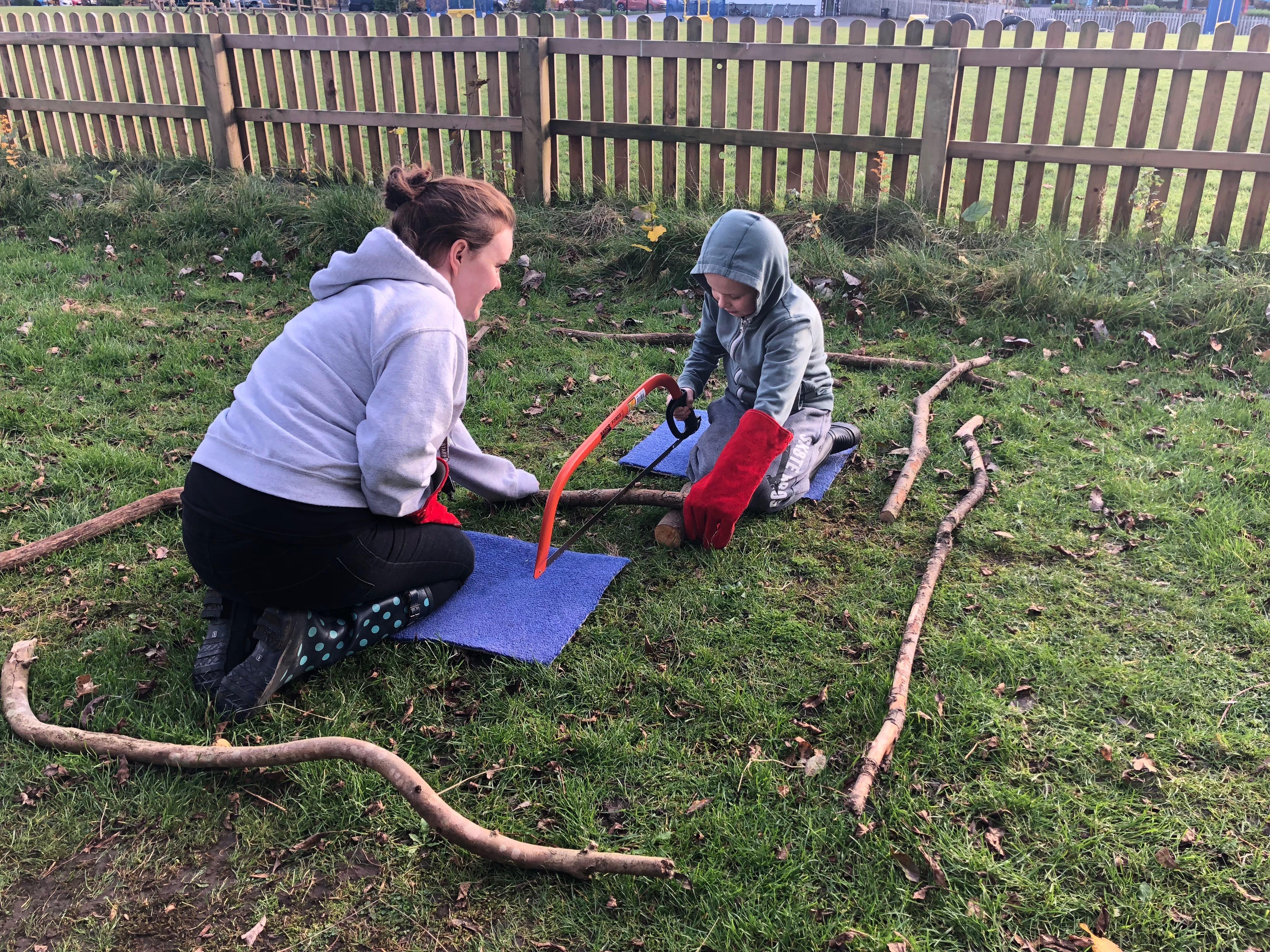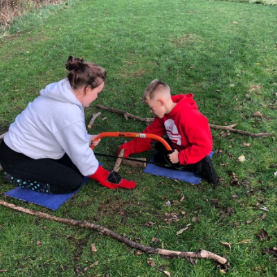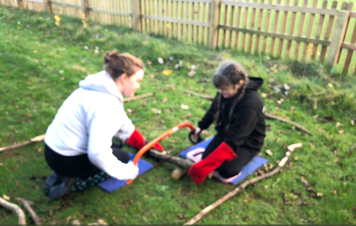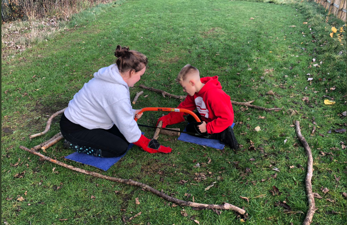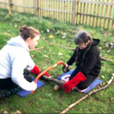 In our designated tool area, we learnt how to safely and responsibly use a Bow Saw to cut wood.