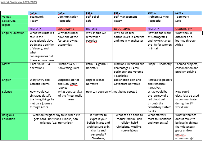 Below you will find some key information about life in Year 6. For day-to-day messages and regular updates about what we are learning in class, make sure you check your child's Class Dojo page.